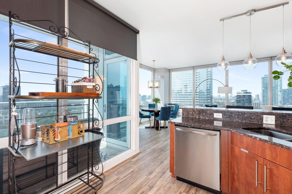Descubra el epítome del lujo urbano en el West Loop de Chicago con esta extraordinaria residencia de dos dormitorios. Este hogar, que aúna una ubicación codiciada con amenidades inigualables, redefine la vida moderna. Ingrese a un espacio meticulosamente diseñado donde cada detalle irradia sofisticación, desde los acabados de alta gama hasta el diseño de concepto abierto que combina a la perfección áreas de estar, comedor y cocina. La cocina gourmet cuenta con electrodomésticos de primera calidad y encimeras de cuarzo, centradas alrededor de una extensa isla. Los dormitorios ofrecen refugios serenos y la suite principal cuenta con un lujoso baño en suite. Más allá de la unidad, le espera un mundo de placer. Manténgase activo en el gimnasio de alta tecnología, descanse junto a la piscina o disfrute de la vista a la ciudad desde el solárium. Con su excelente ubicación en West Loop, esta residencia lo sitúa a la vanguardia de los mejores restaurantes, tiendas y entretenimiento de Chicago. Esto es más que un hogar; es una declaración de estilo de vida. Disfrute de la cima de la elegancia urbana: programe un recorrido privado hoy mismo.