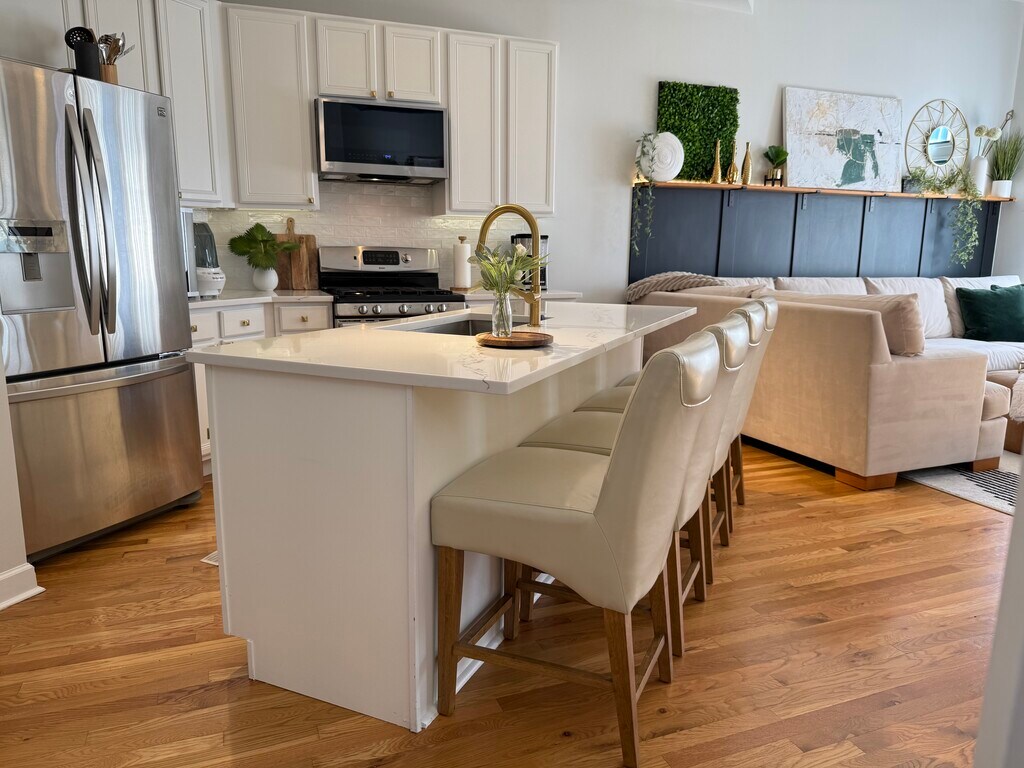 Chic West Loop 2BD/2BA Condo with Private Terrace & Parking – 936 W Madison St Experience luxury living in the heart of Chicago’s vibrant West Loop in this stunning 1,200 sq. ft. 2-bedroom, 2-bathroom condo. Nestled in an intimate boutique elevator building, this 4th-floor residence perfectly combines sophisticated urban living with comfort, style, and modern updates. Step into a sun-filled, open-concept layout with soaring 11-foot ceilings and beautiful hardwood floors throughout. The spacious living and dining area features a cozy fireplace and seamlessly flows to an enchanting covered terrace—a rare 7’ x 14’ private outdoor retreat overlooking Madison Street. This inviting space is perfect for morning coffee, evening relaxation, or entertaining guests. The gourmet kitchen has been thoughtfully updated with new quartzite countertops, a large island ideal for entertaining, a modern backsplash, and new stainless-steel appliances. Whether you’re hosting friends or preparing a quiet dinner at home, this kitchen offers both elegance and functionality. Retreat to the large primary suite, complete with a newly renovated spa-style bathroom featuring a whirlpool soaking tub, updated finishes, and a new custom walk-in closet designed for maximum organization. The guest bedroom is spacious and versatile—perfect for a home office or visiting guests—and the guest bathroom has also been stylishly refreshed. Recent updates add comfort and peace of mind, including a brand-new A/C unit (2025), new in-unit washer and dryer, brand-new track lighting and ceiling fans, and updated fixtures throughout. Additional amenities include: Attached heated garage parking (included in rent) Full-height private storage locker Secure Butterfly intercom entry system Bike room Located in one of Chicago’s most desirable neighborhoods, this condo places you just steps from Restaurant Row, Fulton Market, Mary Bartelme Park, and an array of boutiques, cafés, and shops. You’re also moments away from public transportation, major expressways, and a short walk to the United Center—home to world-class entertainment and sports. With its perfect blend of modern luxury, thoughtful updates, and unbeatable location, Madison Manor offers the best of West Loop living—an inviting space you’ll be proud to call home.