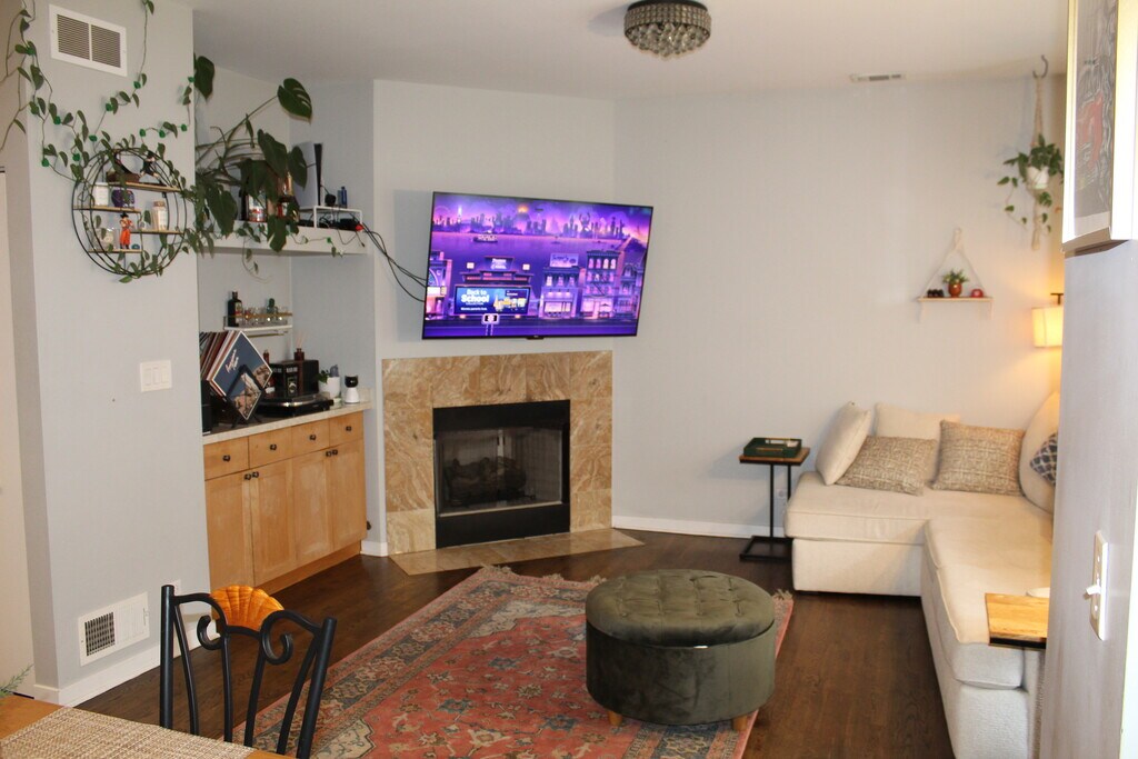 Discover this inviting, sun-filled apartment just a 5-minute walk from the Chicago Blue Line. Nestled on a peaceful residential street, this home offers the perfect blend of city convenience and neighborhood tranquility. Enjoy beautiful hardwood floors, an electric fireplace for cozy nights in, and a private ground-level patio, ideal for morning coffee or evening unwinding. Includes an easily accessible parking spot for added convenience. Ground floor is ADA accessible, with no steps needed to enter through the back, and the dishwasher and waste disposal were replaced within the last year. Don't miss the chance to live in a comfortable space with all the charm and functionality you need. Schedule a tour today!