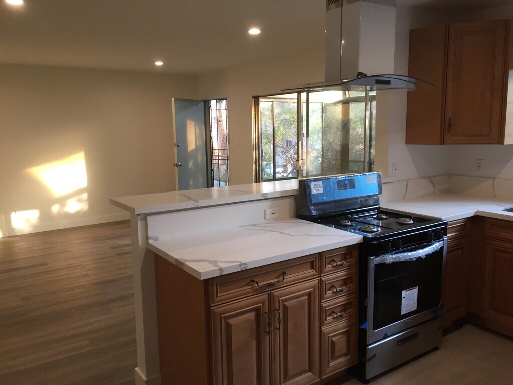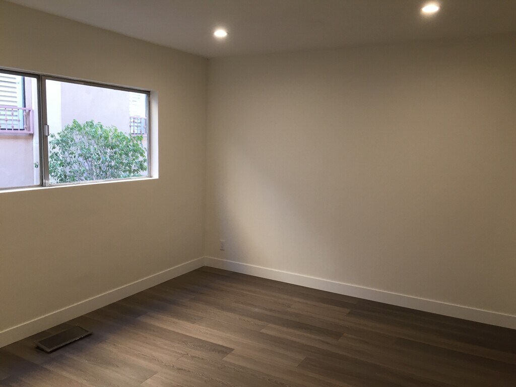 Apartamento totalmente remodelado de dos dormitorios y dos cuartos de baño con duchas nuevas, electrodomésticos de acero inoxidable, nuevos armarios, nuevos pisos laminados de madera, nuevo aire acondicionado central y luces LED empotradas. La cocina cuenta con encimeras de cuarzo y electrodomésticos de acero inoxidable que incluyen: refrigerador, estufa de gas, campana de escape, lavaplatos y triturador de basura. Smart Digital central de aire acondicionado y calefacción. Gran ventana frontal. Ubicado en una de las ubicaciones más deseadas de Brentwood al sur de San Vicente en Barrington Ave. A pasos de tiendas y restaurantes de moda en San Vicente. cerca de Brentwood Village y UCLA. El hotel cuenta con lavandería compartida y espacio cubierto en el estacionamiento para vehículos. Medida por separado para gas y electricidad por unidad pagada por el arrendatario. Plazo de arrendamiento de un año.Llame para configurar el tiempo (310)699-83one3