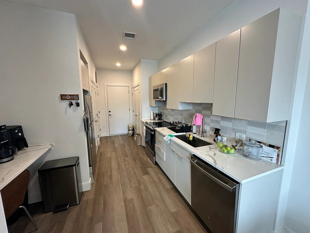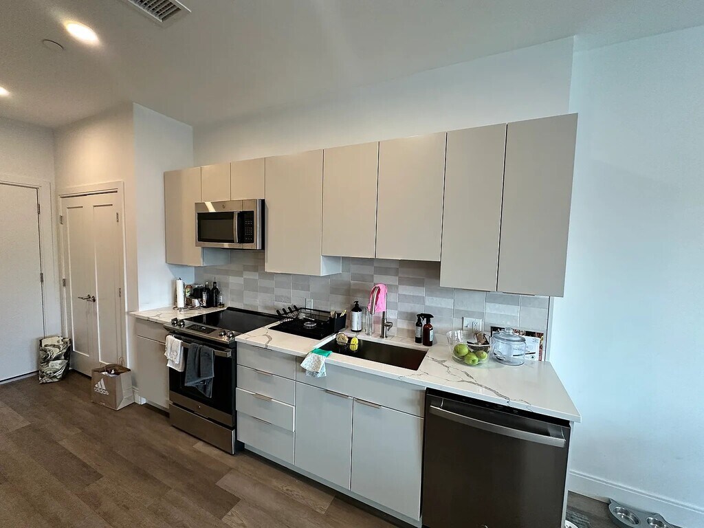 Stunning 2-bedroom, 2-bath apartment available for rent. This beautifully designed unit features an open layout that maximizes space and fills each room with natural light, creating a bright and inviting atmosphere. The kitchen complete with high-quality appliances, sleek countertops, and plenty of cabinet space, making it both functional and stylish. Each spacious bedroom boasts hardwood floors and contemporary finishes, providing a comfortable retreat. The bathrooms are elegantly designed with modern fixtures and tasteful tiling. Convenience is key, with laundry in the unit. Located in a prime area, you'll have easy access to local amenities, a variety of dining options, shopping, and the vibrant atmosphere of the surrounding neighborhood.