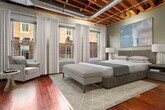 This exceptional loft in the Leather District features soaring 12-foot ceilings and an oversized front-facing window that floods the space with natural light throughout the day.A rare find, this custom home offers two spacious bedrooms and two beautifully finished bathrooms, wide plank hardwood floors, and an ideal open layout.The sleek kitchen is outfitted with high-end stainless steel appliances, including a Sub-Zero refrigerator, Wolf gas stove, and a separate bar area with a Sub-Zero wine refrigerator. A cozy fireplace adds warmth to the intimate dining area perfect for entertaining.The flexible floor plan also allows for the addition of a third bedroom, home office, or gym.
