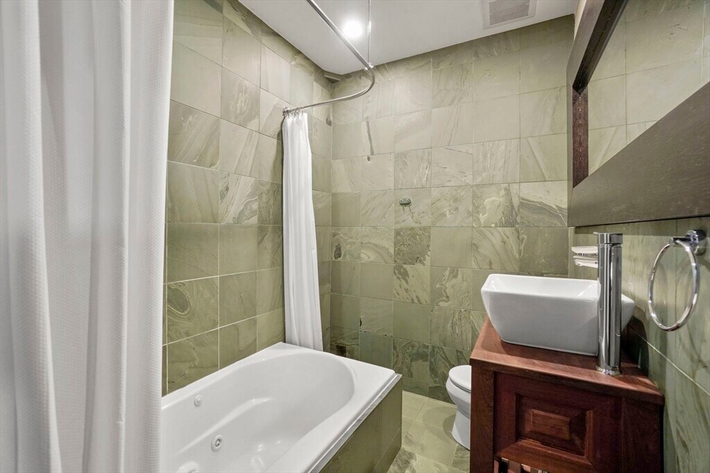 Está localizado en el barrio Leather District, 96 South St, Unit 3 en el código postal 02111 de Boston, MA.
