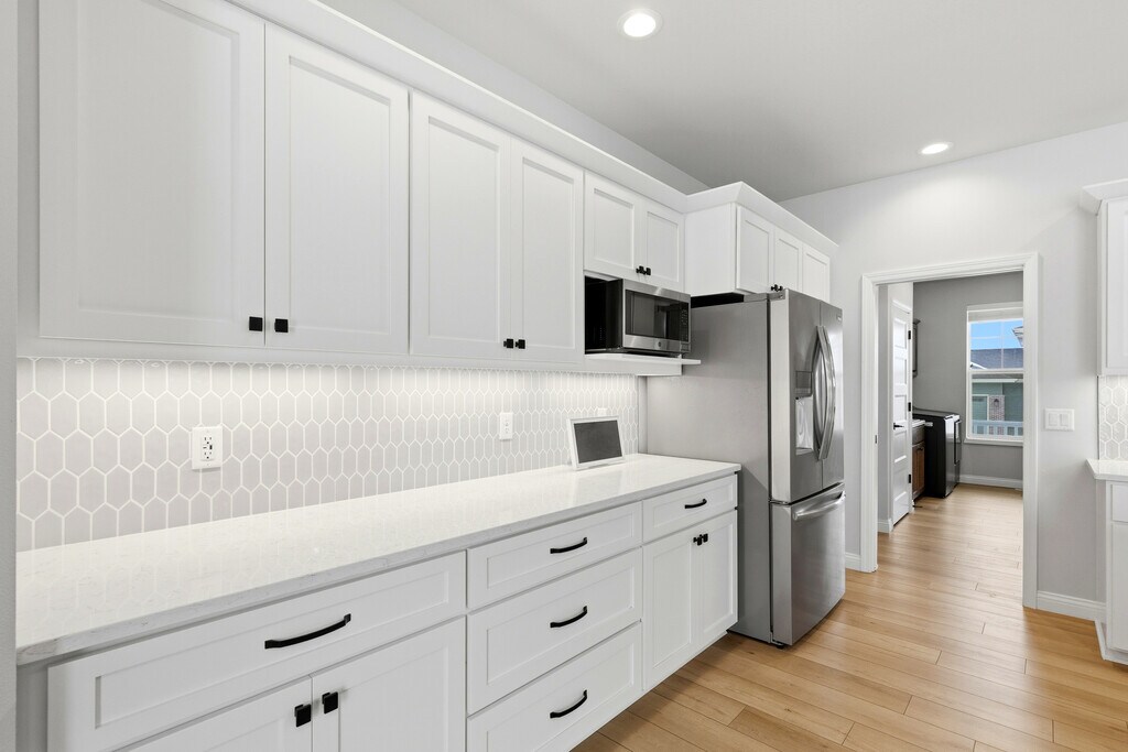 Incredible 4 bedroom, 3.5 bath, two-story in the highly sought-after 1000 Oaks subdivision! The gourmet kitchen impresses with a large center island and snack bar, quartz countertops, subway tile backsplash, stainless steel appliances and pantry with beverage center. The spacious family room offers a gas fireplace with built-ins and flows seamlessly into the dinette with access to a large patio, firepit and fenced backyard. The primary suite features a large walk-in closet and private bath with double vanity and a tiled shower. The finished lower level expands your living space with a cozy rec room and a full bath with a tiled shower. Additional highlights include first-floor laundry with custom lockers, water filtration system, a versatile office/flex room and thoughtful updates throughout. Convenient westside location close to multiple parks and Olson Elementary!