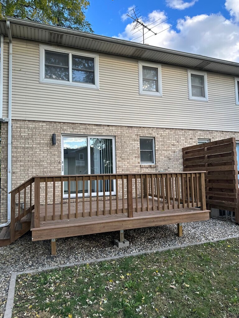 This spacious and stylish 2-bedroom (+ versatile bonus room) duplex unit offers high-end modern finishes and unbeatable convenience perfect for anyone seeking upscale living in a quiet, well-connected neighborhood. Key Features * Upgraded unit - including kitchen, bathrooms, flooring * Luxury bathrooms all-stone tile walls and flooring, modern fixtures, and a relaxing soaking tub * High-end kitchen finishes stone countertops, tile backsplash * New stainless steel appliances refrigerator, stove, and dishwasher * In-unit washer & dryer brand-new and energy-efficient * Central heating and air conditioning for year-round comfort * Bonus room in lower level ideal as a home office, gym, playroom, or guest space * One-car garage plus additional driveway space * Private deck and large yard * Lawn care included in the monthly rent * Ample storage and natural light throughout * Approx. 1,600 sq. ft. of living space Location Highlights * Minutes from I-80/94 and major highways ideal for commuters * Nearby to Purdue Calumet, Indiana University Northwest, and hospitals systems * Close to shopping centers, restaurants, and grocery stores * Walkable to nearby schools * Situated in a quiet, safe residential neighborhood