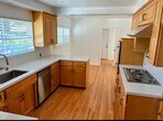 Freshly painted custom mid-century single-story pool home in, move-in-ready condition. This spacious residence offers 3 bedrooms and 2.5 bathrooms with a functional and well-designed layout. The updated kitchen features quartz countertops, stainless steel dishwasher, and gas range. The home includes a two-sided brick fireplace connecting the living room and family room, with a built-in BBQ on the family room side—ideal for everyday living and entertaining. Both full bathrooms include dual sinks with quartz countertops. The primary bathroom offers a walk-in shower, while the secondary bathroom includes a tub/shower combination. A guest powder room adds convenience. Additional features include hardwood flooring throughout, indoor laundry room, central air and heat, and two-car garage with direct access. The property is nicely landscaped with front and rear sprinklers on timers. RV access/storage available subject to owner approval.