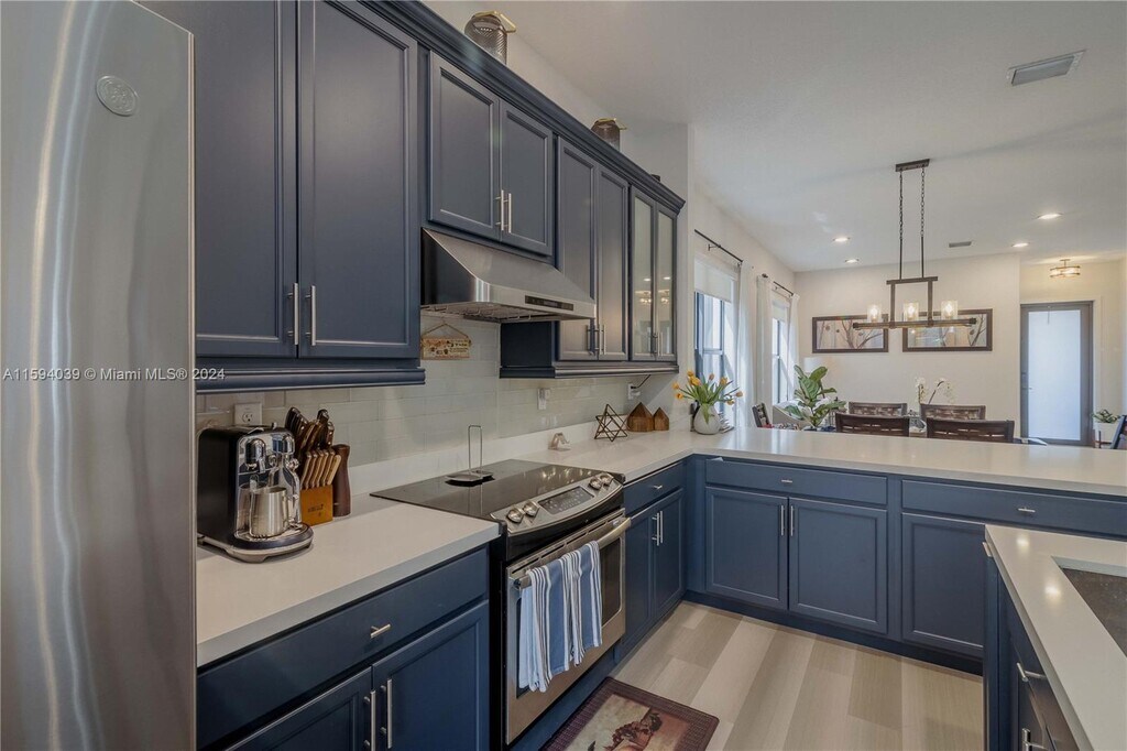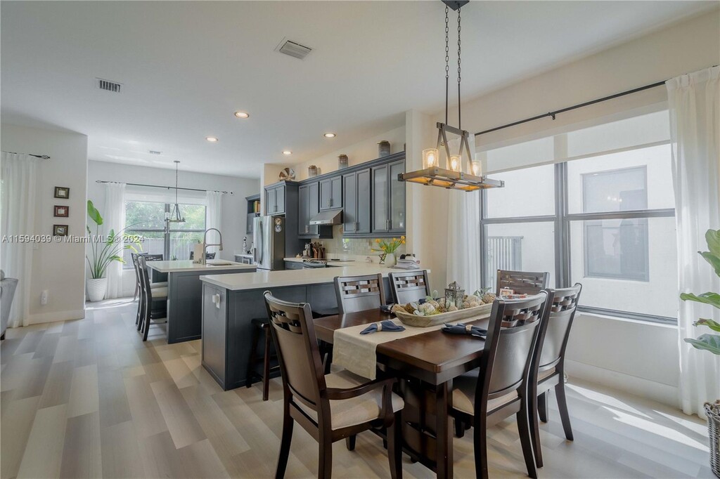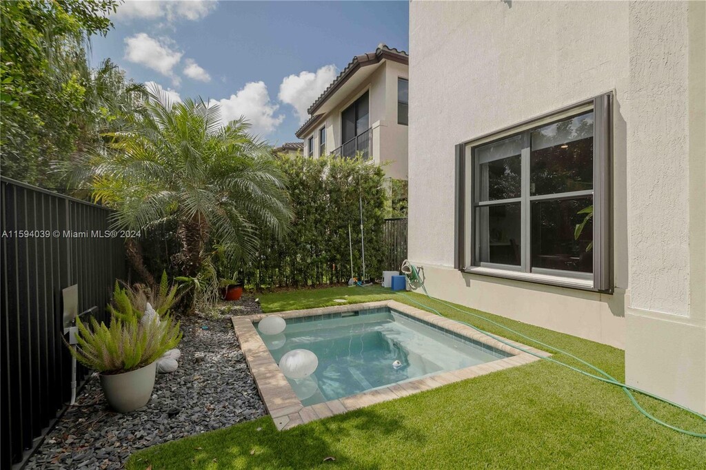 This beautiful Bonterra single-family home is the "Inverness Model" boasting 2,486 Sq/Ft of living area with an open floor plan that includes 3 bedrooms, 2.5 bathrooms, and a den. The completely remodeled kitchen features stainless steel appliances, blue cabinets and quartz countertops. The unit also includes a vinyl floors, bar area, laundry room, blinds blackouts, jacuzzi, electric charger, and a 1-car garage. NO dishwasher in place. This home offers a fantastic location with no neighbors in the back and ample guest parking in the front. The Bonterra gated community is resort-style living offers multiple amenities and is close to major highways like I75 North, Palmetto Expressway, and the Turnpike. First and 2 security deposits. Bonterra HOA could take up to 30 days. Available July 15....NEED 625 CREDIT CARD