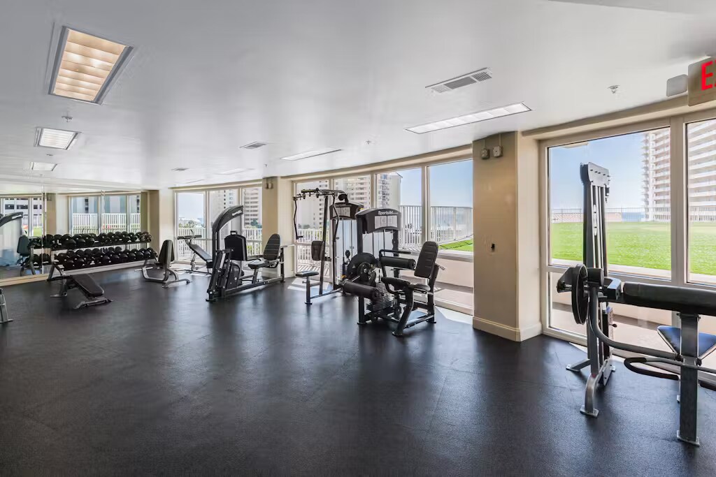Bedroom 1: King bed, sleeps 2, ensuite bathroom with shower/tub combo Bunk Room: Upper twin bunk sleeps 1, lower twin bunk sleeps 1 Second bathroom adjacent to bunks Serene condo with pool, washer/dryer, kitchen, & hot tub - snowbird friendly You'll be glad you chose this lovely vacation getaway! You'll be within driving distance of some amazing attractions, such as Pier Park, where you can find incredible shopping opportunities and knick-knacks for the trip back home. Throw on your favorite bathing suit and stroll on the soft sands of Panama City Beach with your family and splash around on the shores or read your book of choice under the shade of an umbrella as you lie down and relax. Back at the vacation rental, you'll be welcomed with open arms as you step through the front door and into the living area, where you'll find a set of comfy couches and a TV for your enjoyment. Head on out to the balcony and gaze at the gorgeous view while sitting in a chair and bask in the sun rays as they warm you. On-site, you'll be happy to know there are multiple hot tubs and pools for you and your guests to relax in. Don't forget to hit up the fitness gym for some good old-fashioned exercise. There's never been a better time to visit the soothing shores of Florida! RESORT AMENITIES -5 Pools -2 Hot tubs -Fitness room - Nightly fountain light show