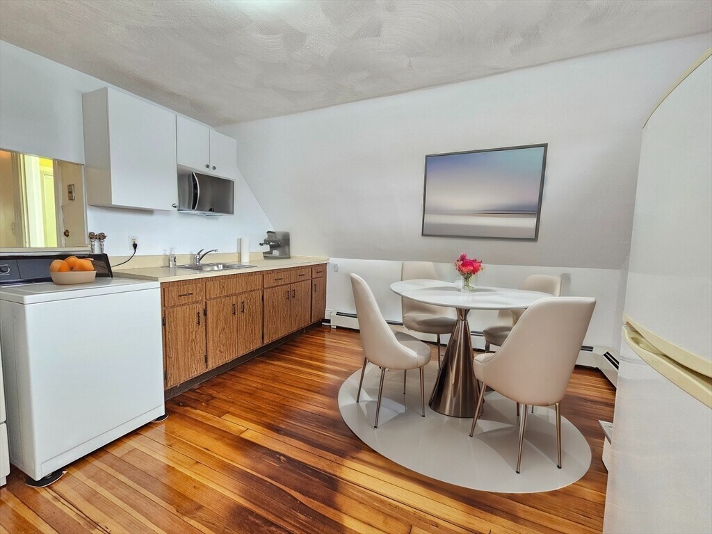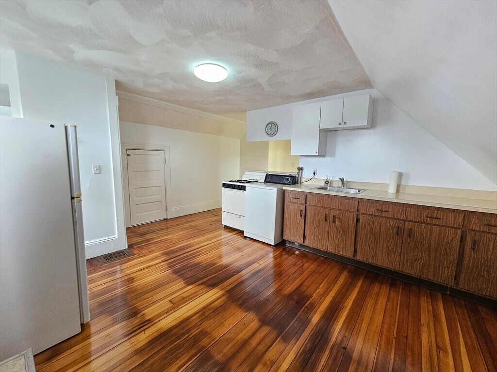 Adorable 2 bedroom,3rd floor WALK UP unit in an OWNER OCCUPIED 3 family. Enter into a large living room with newly refinished hardwood floors that are through out entire apartment. Plenty of space in each bedroom. Main bedroom large enough for king size bed dresser and a chest of drawers,no closet. Second bedroom also a large size with a closet. Kitchen stocked with Refrigerator,Gas Stove & Washing machine. Extra storage within apartment. Bathroom has a stand up shower no tub. On-street permit parking only. Must fill out application for each working adult living in apartment. Documents needed include a gov't issued ID,paystubs and credit report. $25 non refundable fee charged to each working adult if listing office runs a credit report. MLS# 73501193
