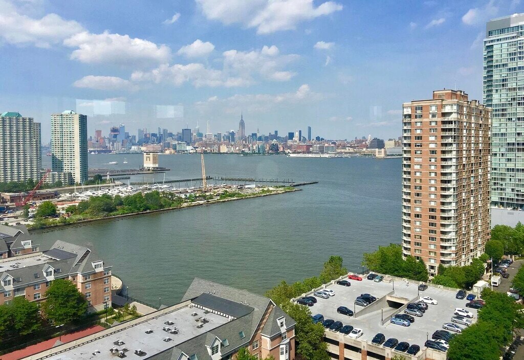 Experience elevated waterfront living in this beautifully renovated 2 bedroom, 2 bath residence at Portofino. Located on the 17th floor in the coveted “02†line, the home offers sweeping Hudson River and NYC skyline views from every room, along with a private terrace. With ideal north and east exposures, the space is filled with natural light throughout the day. The open concept kitchen features stainless steel appliances, granite countertops, and a breakfast bar that flows seamlessly into the living and dining area, perfect for both everyday living and entertaining. The primary suite offers a custom walk in closet and an updated en suite bath with designer finishes, while the second bedroom is generously sized with ample storage. Additional highlights include a private balcony with Statue of Liberty views, an oversized in unit washer dryer, and a deeded garage parking space. Residents enjoy full service amenities including a 24 hour concierge, fitness center, outdoor pool, resident lounge, children’s playroom, dog park, and landscaped patio with grilling areas, with easy access to the PATH, Light Rail, and Ferry for a seamless NYC commute.