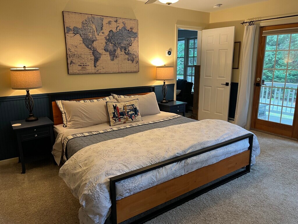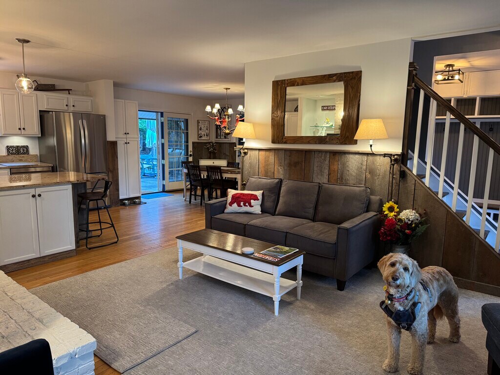 West Dover/Mount Snow – 1.3 miles to Mt Snow (4.3mi to The Heritage Club), walk or ski to the Moover shuttle, 3.5 hours from NYC, 2.5 hours from Boston. Steps from Rt 100 for convenience but a private oasis. Come with your outdoor gear - everything else you need is already here! Furnished 5-6br/4.5ba: - Main floor master – king bed with full bath including jetted tub and walk-in shower - Upstairs master w/full bath – queen bed with adjoining bedroom/office with 2 desks and 2 twin beds - 3 other upstairs bedrooms w/queen beds – each bedroom connects to a full bath (one private, one jack & jill) Step into the main floor new mud room complete with cubbies for your helmets and a glove & ski boot dryer/warmer. Nearby is the cozy living room with a wood-burning fireplace, laundry room and separate den w/a queen pullout sofa. Updated “modern farmhouse” kitchen with granite counters and new stainless fridge & dishwasher. A new, professionally maintained private hot tub and propane grill on the deck just outside the patio door. Large finished basement. A new 65” smart TV, 2 new couches and even a popcorn machine serve up great family movie nights. Game area includes a pool table w/a ping pong topper, foosball, board games, puzzles. Summers are spectacular in Vermont! You'll enjoy the fire pit rimmed with Adirondack chairs -- makes for great conversation on starry nights. Lounge chairs and a patio dining table w/a huge umbrella complete the welcoming setup in the backyard rimmed in trees for privacy. Backyard is fenced in to keep your pooch close by. Fiber WI-FI enables all your streaming needs and work (if you must). All TV’s are either Chromecast-enabled or smart TV’s so you can sign into your streaming services. Quality linens and towels (even hot tub towels!) included. Large 2-car garage to keep your cars, bikes, gear or snowmobiles snow-free. The area oozes with Vermont charm. Walk, bike or snowmobile just up our road to the VAST system trails. Other nearby attractions: Mount Snow skiing/riding/tubing/hiking, The Hermitage Club, skating, stables/riding lessons, great dining, antique shops and wonderful quaint Wilmington shops. Stratton is 8 miles away. In warmer months enjoy boat rentals and swimming at a beautiful undeveloped 10-mile long lake, tennis, golf, farm stands and the famous summer/fall antique & flea market. Available seasonally -- Summer/fall (May-October) $21K, Winter/spring (Nov 15-Apr 15) season $38K for 1 family- Tenant pays utilities plus home services (e.g., hot tub service). No smoking inside. Dogs considered on a case-by-case basis and subject to a pet fee.