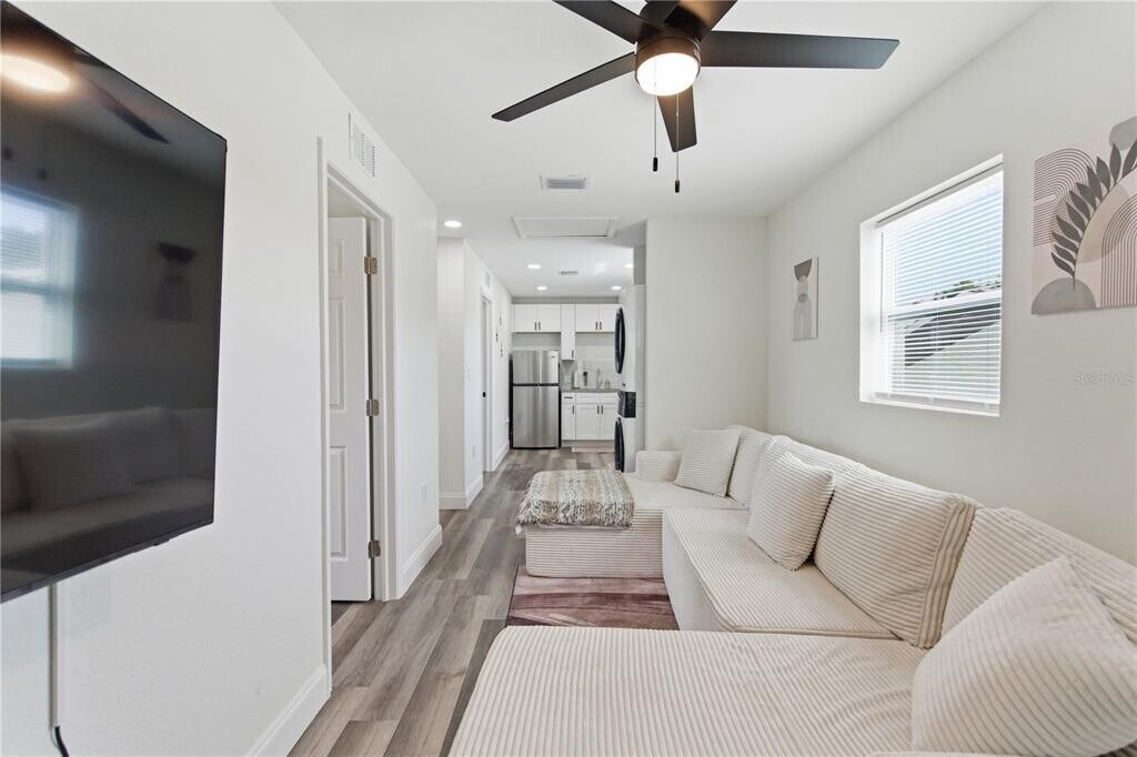 Beautifully designed 2-bedroom,1-bath ADU built in 2024,offering modern finishes and energy efficient living. Interior features include quartz countertops,stainless steel energy-efficient appliances,luxury vinyl plank flooring throughout,and a spa-style bathroom with floor-to-ceiling porcelain tile. Apartment is equipped with impact-rated windows and full insulation,providing added durability,noise reduction,and energy efficiency. Located in a non-flood zone,approximately 10 minutes to downtown St. Petersburg,with convenient access to dining,shopping,and major roadways. Private assigned garage. Pet-friendly (one-time fee applies). Tenant responsible for utilities. Apply MLS# TB8501702