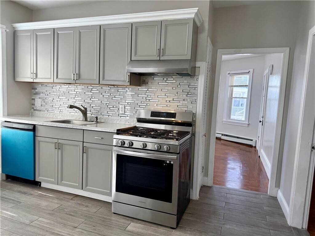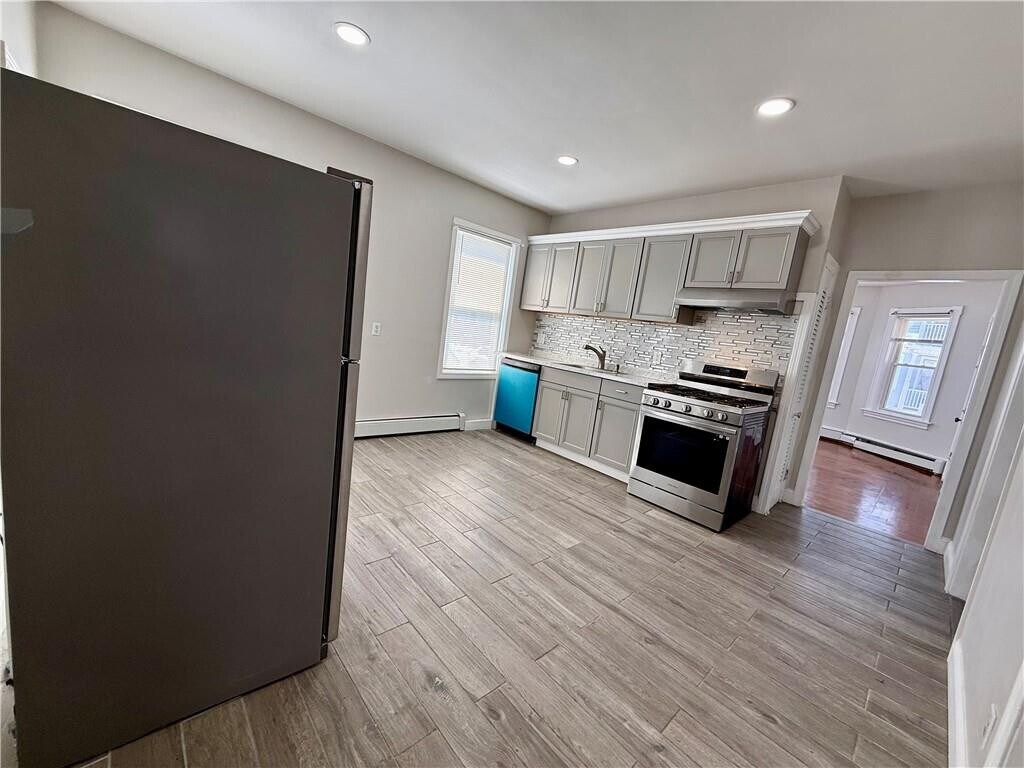 Welcome to this sun-filled first-floor unit in a well-maintained three-family home. This bright and airy two-bedroom apartment features hardwood floors,a private entrance,and a charming porch. Highlights include stained glass windows,an updated bathroom,and an eat-in kitchen with newer stainless steel appliances,a brand-new dishwasher,updated cabinetry,countertops,and a spacious pantry. The unit offers two bedrooms,including one with a walk-in closet large enough to accommodate a home office. Additional amenities include gas heat,gas cooking,and one off-street parking space. A new washer and dryer are available in the basement. Shared yard,perfect for outdoor entertaining and relaxation. Conveniently located just minutes from Roger Williams Medical Center,the VA Hospital,La Salle Academy,Providence College,Rhode Island College,Federal Hill’s renowned restaurants,Eagle Square Plaza,and Downtown Providence,with easy access to shopping,dining,and major highways. No pets. MLS ID 1411007
