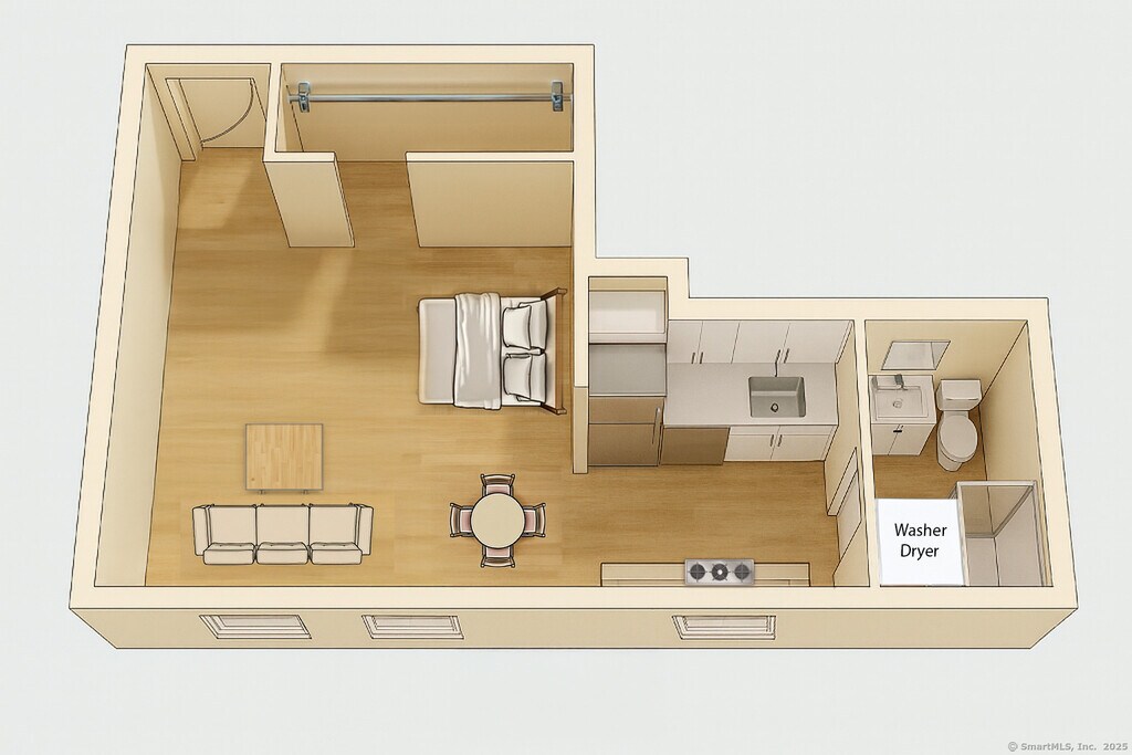Call for Availability - Completely renovated studio in central Norwalk. This residence has been rebuilt from top to bottom, offering a rare opportunity to live in a brand-new space with finishes typically found in larger homes. The kitchen features all-new appliances, modern cabinetry, and a built-in dishwasher. The bathroom has been fully updated with contemporary fixtures and tile. Additional improvements include new flooring, walls, lighting, and a new heating and cooling system for year-round comfort. A walk-in closet and entry foyer with custom cubbies provide excellent storage an uncommon feature in a studio. Highlights: In-unit washer and dryer Brand-new kitchen and bath Bright, open layout with modern design Convenient location near shops, dining, and transit Studios of this quality are rarely available. Strong credit required; small pets considered. MLS# 24129116
