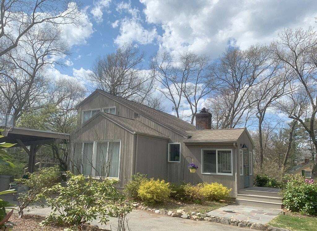 Welcome to Lexington! This charming contemporary home offers great versatility: the spacious living room w/ a wood-burning fireplace and large bow window flows easily into the dining room with floor-to-ceiling windows. The kitchen features SS appliances,gas cooking,granite countertops,a large island,and plenty of storage. The huge deck off the kitchen is great for grilling while basking in sunshine and serenity in the huge backyard. The main level includes a primary suite with updated bath,a second bedroom,and family bath. Two additional large bedrooms and a full bath are located on the upper level. There are many options for home offices including the lower level. The walkout lower level provides a large family room,spacious laundry area,half bath,bonus room,workstation,and storage. The circular driveway,carport,and storage shed add convenience. Close to Lexington HS,Hastings Park,town pool,conservation trails,and easy highway access. MLS# 73503230