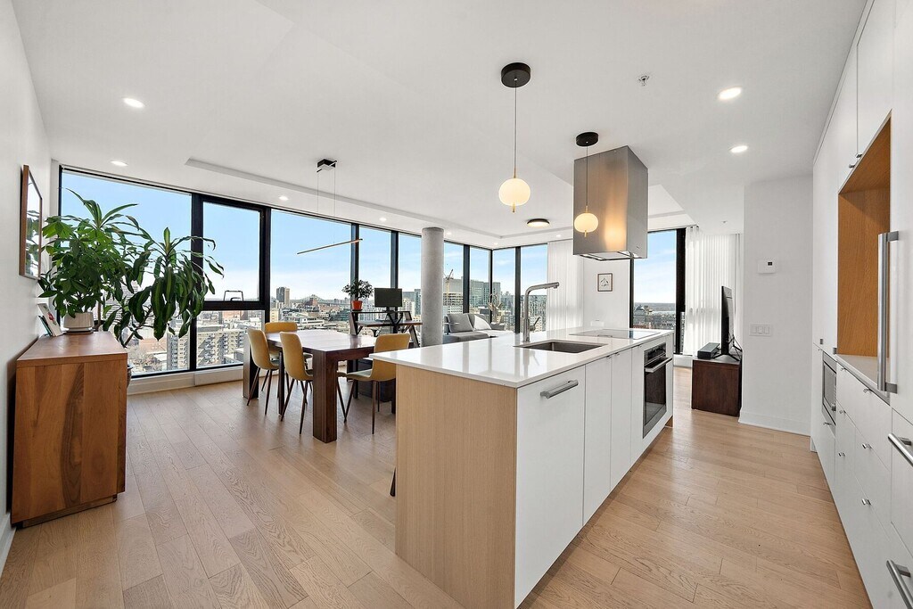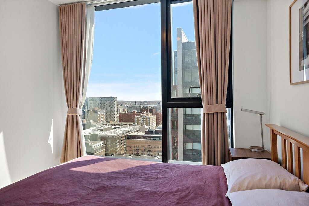 Stunning apartment for rent in Downtown Montréal. Located in the vibrant Quartier des Spectacles, this corner unit features two bedrooms, one bathroom, and an open-concept living space. Bright condo with expansive windows offering breathtaking panoramic views. Includes one parking space, one storage locker, and two bicycle storage areas. The Laurent & Clark offers high-end amenities such as an urban chalet, lounge, terrace, fitness centre, and relaxation areas. Prime location, right across from the Saint-Laurent metro station.
