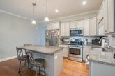 This beautiful, welcoming Townhome in the Abbott Village Community, with 2 Bedrooms, 2 and 1/2 baths, is ready for you! The open concept 1st floor gives you an immediate sense of home. The kitchen has lovely grey painted cabinets, stunning granite counters, and seating for 4 around the roomy island. The living room has plenty of room to relax in front of the fireplace as you take in the nature views out of your patio door. a lovely 1/2 bath on the first floor is convenient for you and your guests. Upstairs you will find a full hallway bath for the guestroom and a spacious bath as a part of the primary suite. Space for a few comfy seats on the balcony to grab a cup of coffee in the morning and listen to the birds. Hardwood floors throughout the first floor, tile in the baths, cozy carpet upstairs and a lovely neutral gray paint make this home easy to move right in! It's a pet friendly home but must be well trained ones that don't destroy.