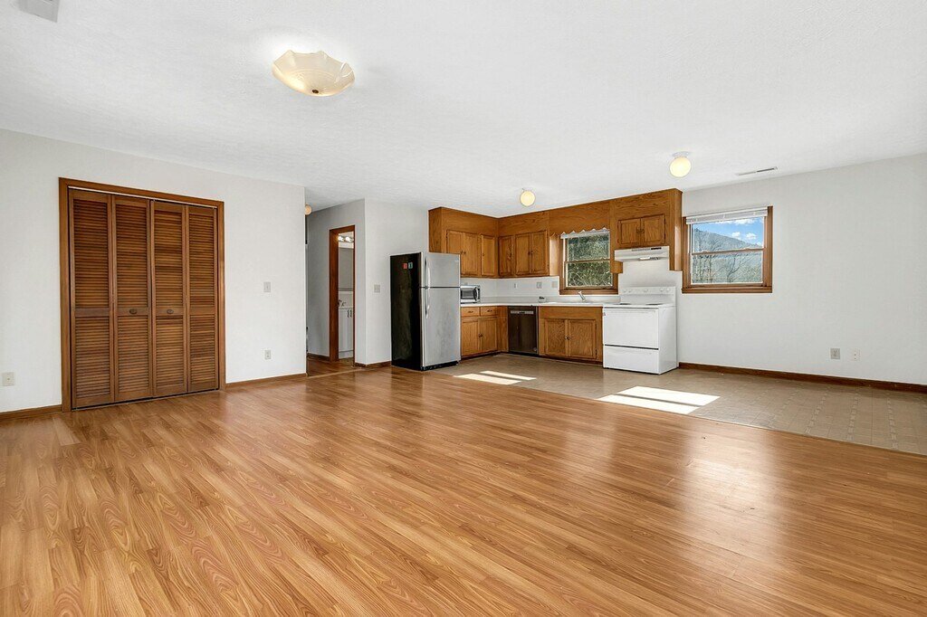This is the upstairs level unit in a duplex. There are tenants in the upstairs unit. It is in a great location in North Asheville just north of Reynolds Mountain. Easy access to downtown Asheville (10 minutes). Spacious living areas and bedrooms. Laundry room in unit (W/D not included). Property has a couple parking spaces. Home has a heat pump for heat and a/c. Convenient location to downtown Asheville or downtown Weaverville. Please do not disturb current tenants Looking for a one year lease. Security deposit equal to a month's rent. $100 administrative fee due at lease signing. No application fees charged. Application required prior to showing. Tenant to also pay $50/month to landlord for water and sewer.