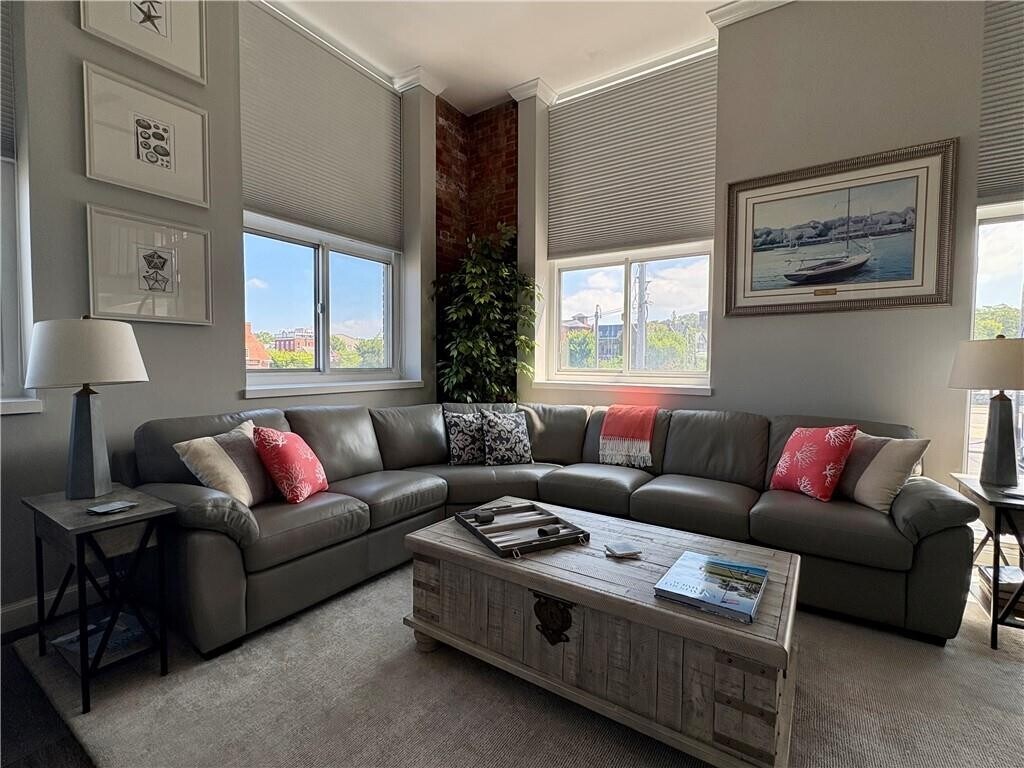 Available November 1,2025 through May 31,2026. Nestled in the heart of downtown Newport,this sun-soaked unit offers contemporary updates and breathtaking views of Thames Street and Newport Harbor. Boasting impressive 18-foot ceilings,central air conditioning,and charming exposed brick accents,this condo radiates both modern elegance and charm. Large windows throughout the unit frame the picturesque vistas,inviting natural light and the beauty of the surroundings into every corner. Included with this unit is a rare amenity—a coveted parking spot in the garage,ensuring convenience and peace of mind in the bustling downtown area. Residents also enjoy access to desirable building amenities,such as a shared rooftop deck offering sweeping water views and an elevator for effortless access to all levels. With the luxury of parking taken care of,residents can fully immerse themselves in the vibrant downtown Newport scene,with shops,restaurants,and attractions just moments away. Experience the epitome of urban living and coastal charm with this thoughtfully designed condominium,where the best of Newport is right at your doorstep.
