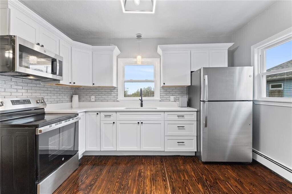 This beautifully remodeled 2 bedroom apartment is available and waiting for it's new renter. This unit is ready for you with the completely new eat-in kitchen that showcases new cabinets with crown moldings,tile backsplash,quartz counter tops,stainless steel appliances,gorgeous lighting & pantry. Entire unit has newly finished hardwood floors,upgraded hardware and paint. The oversized fully tiled bathroom has upgraded lighted round mirror,with tiled tub surround. Separate clean & painted basement will have new washer and dryer installed in February for just this units use. Plenty of room in the basement for storage & possibly office space with a little imagination. The outside of the home has a private entrance,separate driveway,fenced backyard,newly vinyl sided and all new windows. The desirable Johnston neighborhood is right on the North Providence line. Close to shopping centers with easy highway access. Excellent Opportunity to rent a clean upgraded unit with owner occupied in an established community with proximity to amenities and major routes. Dont delay in scheduling your private tour. MLS ID 1402167
