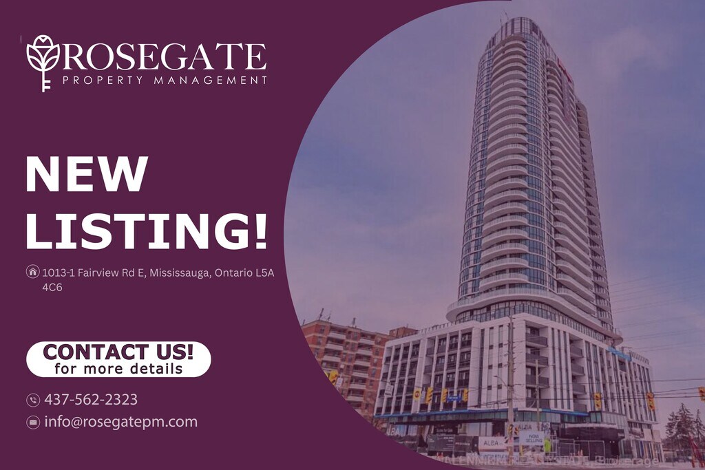 Pet-Friendly 1-Bedroom Condo with Private Balcony in Mississauga Welcome to Unit 1013 at 1 Fairview Rd E, Mississauga — a well-maintained 1-bedroom, 1-bathroom condo offering approximately 550 sq. ft. of comfortable living space in a convenient and well-connected location. Small pets are welcome, making this an excellent option for pet owners seeking a professionally managed Ontario rental property.The condo features a functional layout with a bright living area and a well-sized bedroom designed for everyday living. Step out onto your private balcony, perfect for enjoying fresh air or relaxing after a long day. The open design maximizes space and natural light, creating a warm and inviting atmosphere.Located close to transit, shopping, dining, and major routes, this condo offers easy access to daily essentials and commuting options, ideal for professionals or couples.Professionally managed by Rosegate Property Management, a trusted Ontario rental property management company, this Mississauga condo for rent is a great opportunity to secure a pet-friendly home in a prime location. Schedule your viewing today.
