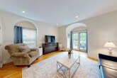 Feel at home in this spacious 3-bedroom, 2-bath townhome in the heart of Brookline Village, offering over 2,000 square feet of furnished living space across the second and third floors of a historic building. Blending classic character with modern comfort, this home features high ceilings, hardwood floors, and central air throughout. The main living level includes an open living room with a sleeper sofa and TV, a formal dining room, a fully equipped kitchen, and a full bathroom. Upstairs, French doors open to a flexible den or bedroom with a queen Murphy bed, sofa, and large TV, along with a king-size bedroom and a second full bath. A private deck is ideal for morning coffee or evening unwinding. Parking is available for an additional $15 per night and a pack n' play/high top chair is available upon request for $10/night. Pets are considered on a case-by-case basis with an additional $250 pet cleaning fee per pet. Located just steps from cafés, bakeries, and neighborhood favorites along Harvard and Washington Streets, the townhome sits approximately 0.1 mile from the MBTA Green Line (D branch). From here, the Longwood Medical Area, Fenway Park, area universities, and downtown Boston are easily accessible. Brookline Village offers a rare balance of calm and connection — a walkable neighborhood with tree-lined streets, local markets, and nearby green spaces like Emerson Garden, Cypress Street Park, and Larz Anderson Park. Please be respectful of neighbors and the neighborhood. This is a great place for large families or groups, but not the place to be loud/rowdy and have parties. There is a $150 lost key fee and $100 lock out fee. Should your stay extend beyond 28 days, there will be an adjustment in the cleaning fee. It would be super if shoes could be removed, shoe removal will make it quieter for people who live below. Registration Number: C [SI]