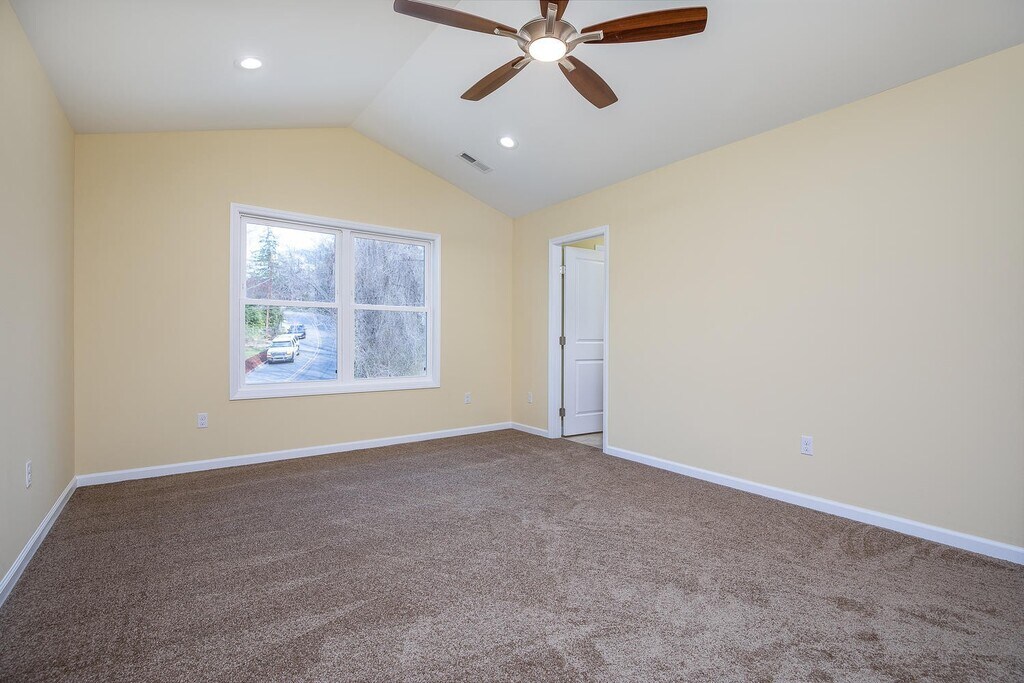 Modern two-story house in a super-convenient location just south of downtown Asheville. The main floor's open plan living room, kitchen, and dining room have hardwood floors and great natural light. A covered front entry and open back deck off of the dining area offer nice outdoor living space. The kitchen has granite counters and stainless Whirlpool brand appliances including the electric range, dishwasher, built-in microwave, and refrigerator. The main floor also includes a powder room and the laundry closet, located in the kitchen. The washer and dryer are included! Upstairs are all three bedrooms and the two full bathrooms. Bedrooms are carpeted. The primary bedroom has vaulted ceilings, a ceiling fan, and an en suite bathroom with a bathtub/shower. The hall bathroom also includes a bathtub/shower. Paved off-street parking. Central air conditioning and central heat (dual-zoned electric.) All utilities (including electricity and water/sewer) and lawn care are tenant responsibilities. One cat is negotiable. No smoking. No cosigners.
