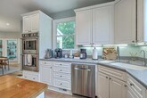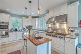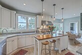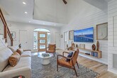 Feel at home in this luxe Isle of Palms retreat, offering 3,000 sq ft of living space. This home features 5 bedrooms and 4.5 baths. This home features cathedral ceilings, shiplap walls, and wood accents. The Italian marble ventless gas fireplace is a stunning focal point, while large windows flood the room with natural light and serene views of the surrounding greenery. The fully equipped gourmet kitchen features dual Sub-Zero refrigerators, a six-burner gas cooktop, and double ovens. The wrap-around porch offers plenty of space for grilling, dining, or simply relaxing. A golf cart is available for rent; please inquire about pricing and availability. Pets are welcome for a $150 pet fee to enjoy the fenced-in yard. Located just a few minutes from the beach and Isle of Palms Marina, this home is ideal for water lovers. Enjoy dining options at the marina or nearby restaurants in the heart of the island. For family fun, visit the public recreation park with a playground and tennis courts. Historic Charleston is just 12 miles away, offering endless cultural and dining experiences. There is a 4 car maximum. Here's a breakdown of the bedrooms: - Master Suite (1st Floor): King bed, en suite bath with soaking tub, separate shower, two walk-in closets, flat-screen TV, and private outdoor sitting area. - Bedroom 2 (2nd Floor): Queen bed, en suite bath, flat-screen TV. - Bedroom 3 (2nd Floor): Queen bed, en suite bath, adjoining room with a twin bed and play/gaming area. - Bedroom 4 (2nd Floor): Full-sized bunk beds and flat-screen TV. - Bedroom 5 (2nd Floor): King bed, en suite bath, and adjoining room with a twin bed and crib, changing table and play area with toys! [SI]