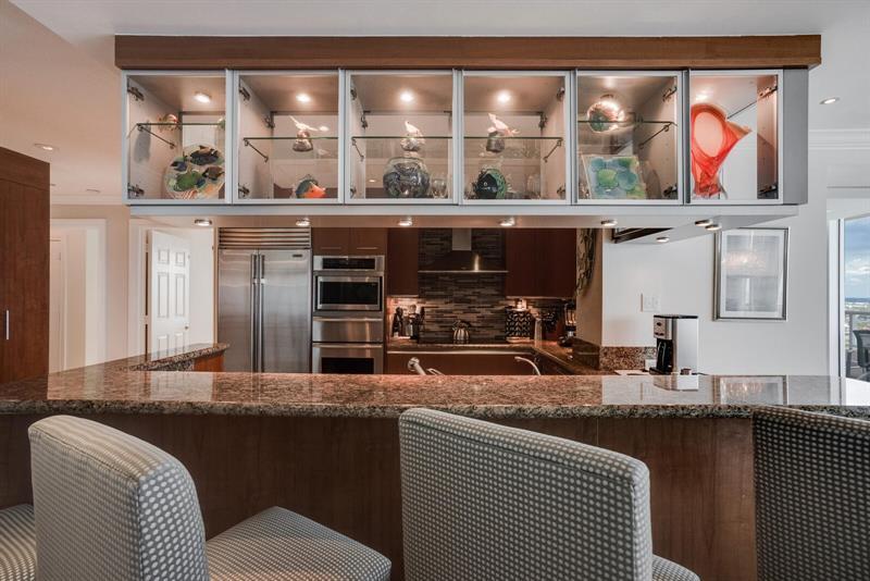 Perched high atop the 5 star Fort Lauderdale Beach Ritz-Carlton Private Residences. This stunning corner 2 bedroom with den/2.5 bathroom residence offers incredible Ocean to Intracoastal views from every room. Primary suite has private terrace access, large walk in closets, primary bath retreat representative of a luxury resort. Motorized solar shades throughout. Walk in utility room with full size washer/dryer. Den easily converts to third sleeping area with pull out sofa. Enjoy The Ritz-Carlton resort lifestyle with a 10,000 sq ft Spa, state-of-the-art fitness center, valet, bell service, in-room dining and two restaurants and bars on property. Tropical pool terrace suspended over the Atlantic Ocean.