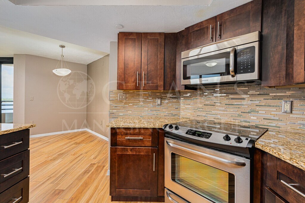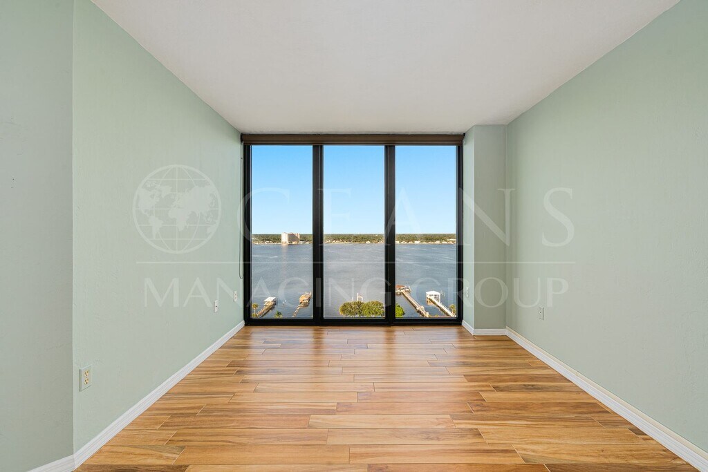 Location is EVERYTHING, and this Golf Community Condo is just steps to the Beach, Shopping, Tennis and Pickleball, Parks, and Entertainment. This 17th-floor home features, 2 bedrooms, and 2 bathrooms, floor-to-ceiling windows with 180-degree BREATHTAKING RIVER VIEWS. This unit is spotless and meticulously maintained. It does have a few furnishings that may be removed. Updated to perfection and Move-in Ready! WON'T LAST LONG! See why they say Life is better in the Shores! $150 Administrative Fee