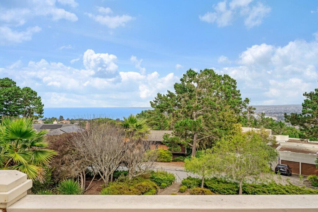 Experience coastal living in this beautifully designed living space across three levels. Enjoy breathtaking ocean views from the living room, kitchen, and primary suite. The spacious, fully equipped kitchen features panoramic windows and newly refinished wood cabinets. High ceilings, Venetian plaster walls, and oversized windows fill the home with natural light. The floor plan includes a formal dining room, living room, family room, game room with a pool table and bar, separate office, and main-level laundry. The primary suite boasts a private balcony, a walk-in closet, and a luxurious bathroom with a whirlpool tub, a shower/steam room. Relax by one of three fireplaces or take in the fresh air from two balconies. Outdoors, enjoy a front and back yard frequently visited by deer and rabbits. A 3-car garage with high ceilings provides ample storage. Fully furnished and move-in ready. The property is perfectly located just 10 10-minute drive to downtown Monterey with plenty of shopping, dining, and entertainment options, including Cannery Row and Monterey Bay Aquarium. The 17-mile drive is minutes away; plenty of hiking trails, parks, and beach walks. Furnished and move-in ready.