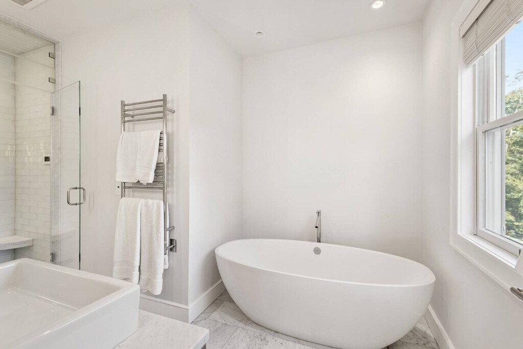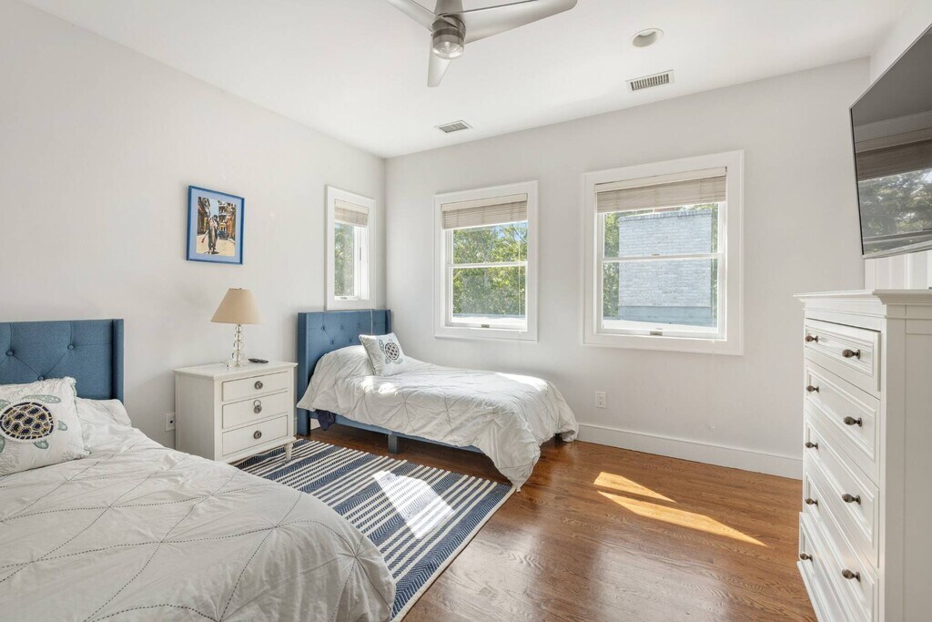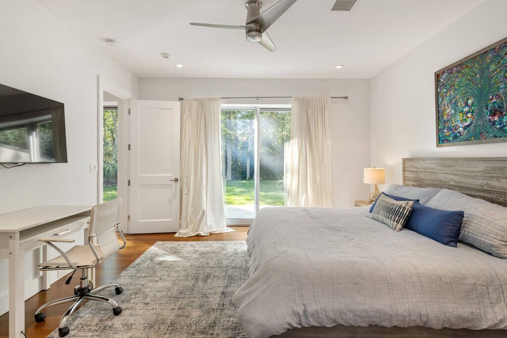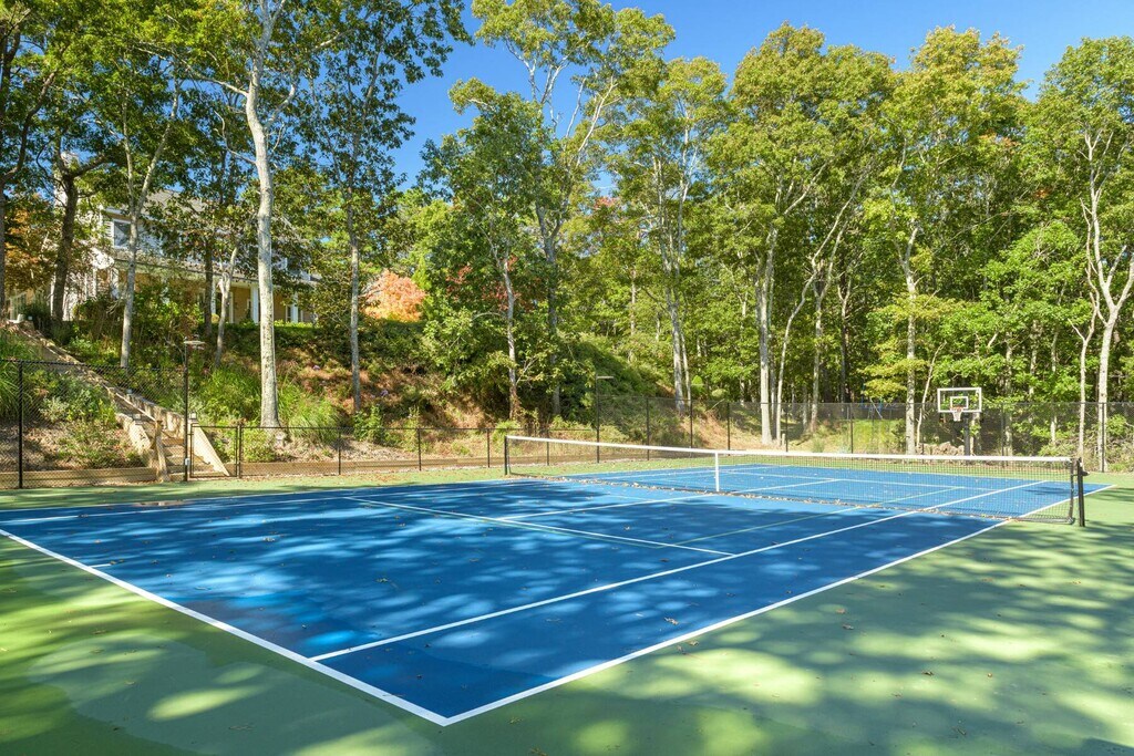 Available for August with a two-week rental minimum, the property includes approximately 6,000 square feet with 6 bedrooms, 6 full bathrooms, and 1 half bath. Four bedrooms are located on the second level, including a primary suite with separate tub and walk-in steam shower with bench, a junior primary suite, and 2 additional bedrooms sharing a Jack-and-Jill bath. The main level includes a TV den with sliding doors that can convert to a 7th bedroom, a full bath with walk-in shower and bench, a study, sitting area, and an open living, dining, and kitchen area. The kitchen includes dual dishwashers, two sinks, 6-burner stove, two beverage drawers, oversized Sub-Zero refrigerator, and walk-in pantry. Laundry room with dual Samsung washers and dryers plus mudroom with half bath. The lower level has 10-foot ceilings, a den or library with wet bar, refrigerator, Peloton bike, patio access, and 2 additional bedrooms with ensuite full baths, walk-in showers with benches, and walk-in closets. Built-in audio, whole-house WiFi, wired cable connections, security with cellular back-up and app control, and WiFi thermostats serve all three levels. Outdoor features include 13-foot ceilings in the great room and rear porch, a 45-foot lap pool with automated safety cover and remote spa controls, Har-Tru tennis court with pickleball lines and lighting, adjustable basketball hoop, and a full gym with cardio and strength equipment. [[Rental Registration # RA251784]] EH RR #: RA251784 Rental Terms: August - Labor Day: $135,000
