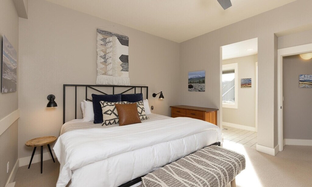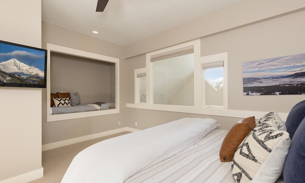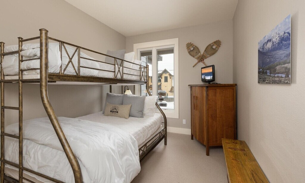 Discover elevated mountain living at its finest in this exquisitely renovated 3-bedroom, 2.5-bathroom Saddle Ridge townhome, set in the prestigious Moonlight Basin enclave of Big Sky, Montana. With direct ski-in/ski-out access to the Iron Horse Lift and mere steps from the exclusive Moonlight Lodge, this well-appointed residence offers a seamless blend of alpine adventure and refined relaxation, backdropped by the grandeur of the Spanish Peaks. Spanning over three thoughtfully designed levels, this elegant mountain retreat invites you to experience the height of comfort and style. A soaring, sunlit great room with two-story vaulted ceilings anchors the main living space, featuring a stone fireplace, plush seating, a 55" LG OLED Smart TV with Sonos speakers, and panoramic mountain views that shift with the light of day. At the heart of the home, a recently remodeled gourmet kitchen caters to both casual and formal entertaining, featuring updated appliances, extensive kitchen accessories, and multiple dining options, from the generous bar counter and formal dining table to the scenic outdoor deck. Whether you're preparing après-ski refreshments or a celebratory meal, every detail has been curated with the discerning traveler in mind. A separate laundry room with a washer and dryer is available for your convenience and easy packing. Luxury linens and towels are flawlessly placed in each bedroom and bathroom. A coffee starter kit, salt and pepper, oil and vinegar, and cleaning supplies such as dish soap, dish detergent, and paper towels are additionally placed to make your stay as convenient and seamless as possible. This slopeside Saddle Ridge Townhome boasts not only direct ski access to the Moonlight and Madison Base areas in one of the best locations in Big Sky, but also provides an ideal base for summer adventures. With easy access to scenic hiking and biking trails, and both the Gallatin and Madison rivers close by for fishing, rafting, and other water sports, there is plenty to see and do. Alternatively, take a 45-minute scenic drive to the geological wonders of West Yellowstone, to see Old Faithful erupt or marvel at the colors of Grand Prismatic Spring. Check-in to your vacation home with ease as the property manager personally conducts a brief home-orientation and assists with luggage and questions. Ski stress-free directly in and out of your unit by utilizing our lift ticket and ski rental delivery system. Garbage pick-ups are also provided daily as needed, and groceries can be stocked for arrivals upon request. Guest access is not available. [SI]
