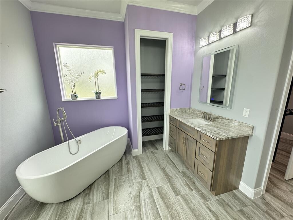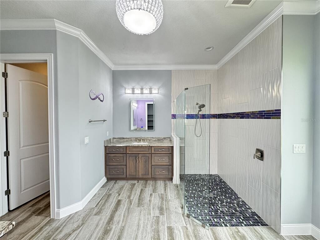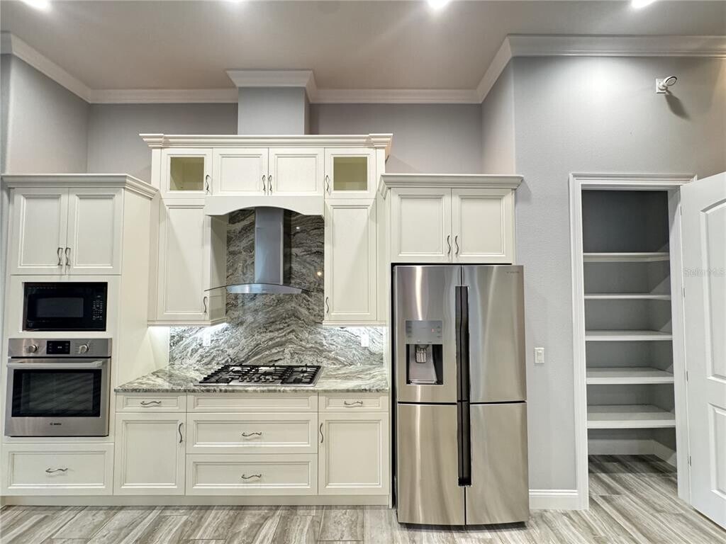 One-of-a-kind contemporary custom-built (2017) home has all imaginable bells & whistles! Oversized corner lot with immaculate landscaping,recessed lighting in soffits,13 security cameras inside & out,ring doorbell,12ft covered entry,double led glass front doors. Open floor plan with custom gourmet kitchen featuring 42" staggered soft close cabinetry with display cabinets above,built-in oven,gas stove top,Bosch stainless steel appliances,large island for seating & serving with farm sink. Formal dining area opens to the kitchen as does the den/office. Master bath w/ walking shower & soaking tub,designer tiles and finishes all over. 2nd/3rd bedrooms are both en-suite with designer showers. Allure transitional shades throughout,8 ft Cheyenne style doors,12 ft,double trey ceilings w/ crown molding,granite & tile of course! Side Load Garage is 742 sq.ft with mini split a/c,epoxy floor,solar h20,water softener,rid-o-rust system,whole home Generac,spacious Laundry room has granite counters,front load washer and dryer and 42" cabinetry & custom shelving. It is truly one of a kid house for a very stylish and luxurious life. MLS# FC313322