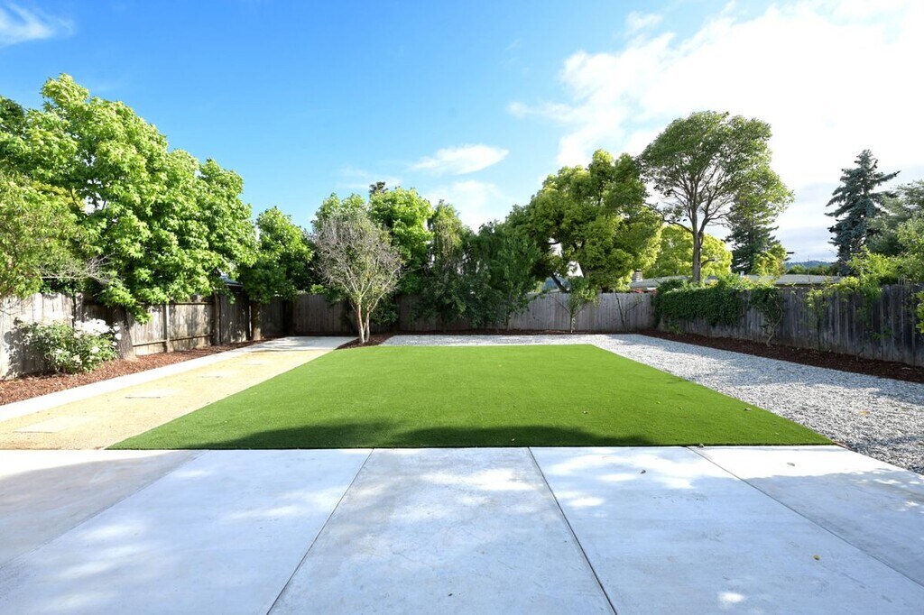 You won't find anything else like this! This home has been completely remodeled 2 years ago and offers modern living conveniences. You will fall in love with this home the moment you step through the front door and look across the large open living space into the huge backyard. This single-level four-bedroom home with 2 full bathrooms features elegant wide plank flooring, A/C and recessed lighting. The new kitchen with quartz countertops offers ample storage and working space, stainless-steel appliances, gas range and even a bar sink. It opens to the living and dining areas and from there flows to a huge backyard. The large island is ideal for cooking together and for quick meals at the counter. The skylight and multiple windows bring in a lot of natural light. Through sliding doors from the main living area and from the primary bedroom you can step down into a large patio perfect for outdoor cooking and eating. There is plenty of space for outdoor furniture and entertainment. This large and flat backyard is surrounded by mature trees including apple, peach, cherry and orange which make the place fun and private. There is a large storage unit in the back and a smaller one on the side. This property is located near Pleasant Valley, Sinaloa and San Marin schools and under 5 minutes to Miwok Park, Bay Club and Mt. Burdell hiking and biking trails. Please note: there is no garage. The garage has been converted into a studio with a separate entrance, and it is rented out to a different tenant. There is only one common wall, which has been sound and fire proofed. . Each home has private entrance, private outdoor spaces, unique address and separate utilities. Picture are from 2 years ago. New pictures will be taken after the current tenant vacates the property. The walls are white now, and there is a large, good looking storage shed in the back.