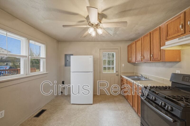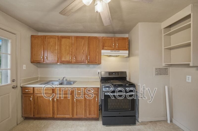 One story duplex with two spacious bedrooms and one bath. Freshly painted interior. Wall to wall carpet. Window blinds. Eat in kitchen. Updated bath. Washer and dryer hook ups. Ceiling fans. Excellent closet space. Central heat and air. Double pane windows. Front porch and rear stoop. Brick exterior. Amenities: washer and dryer hook ups