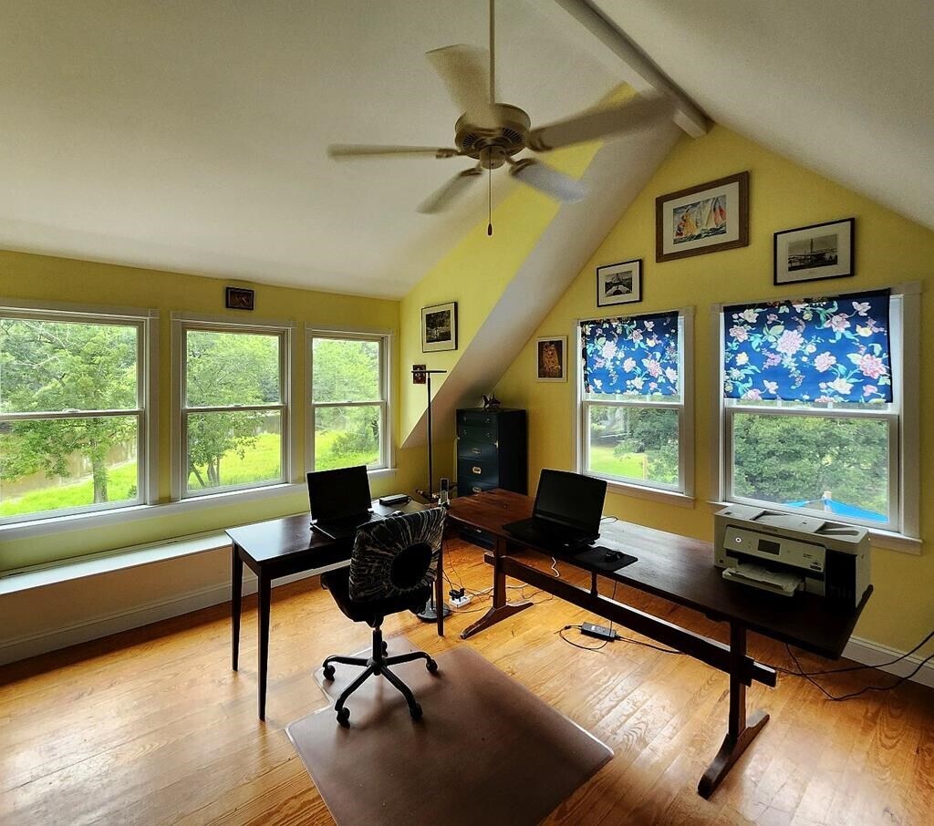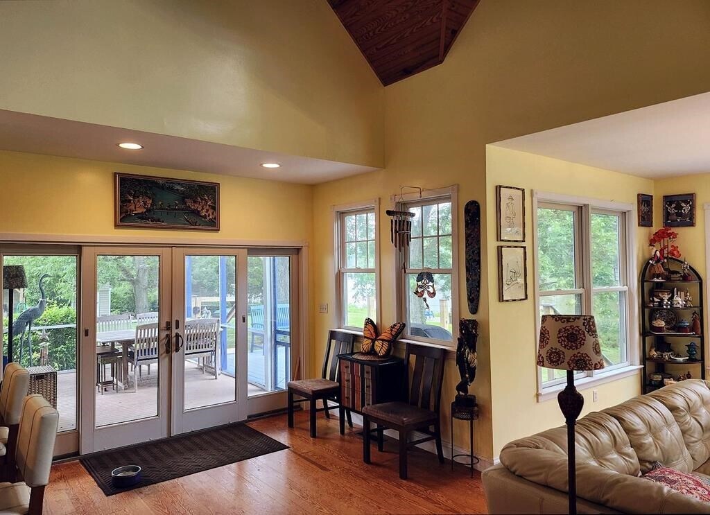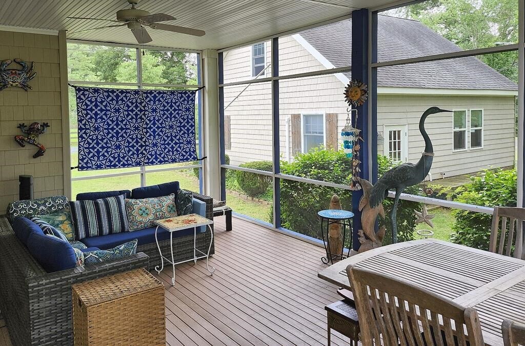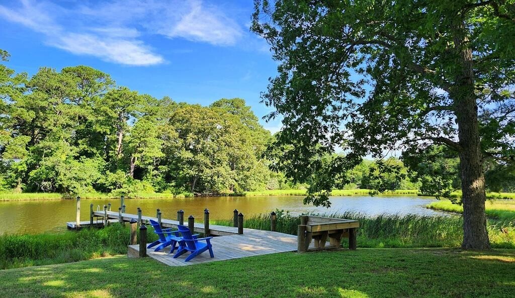Nestled on 250 feet of Onancock Creek, this light-filled home offers stunning creek views from every room and spacious renovated porches. Watch eagles, herons, and sunsets from the new dockside deck and saltwater pool. Flowering plants, pecan trees, raised beds, a two-story garage with climate-controlled workshop, and new high-efficiency HVAC add comfort. Quiet dead-end street in town.