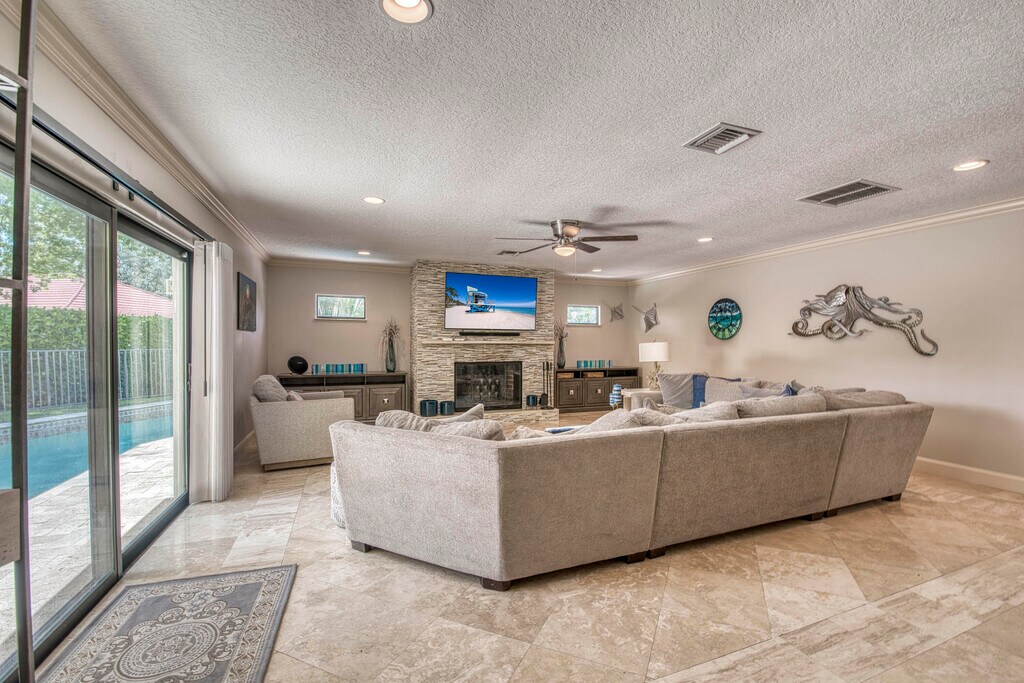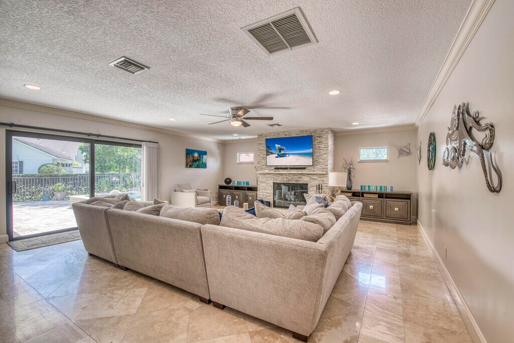 Seasonal Rental! Located in the prestigious community of Burwick Estates within PGA National, this stunning 3 bedroom, 3 bath home offers over 3,000 sq ft of beautifully upgraded living space on a premium lakefront .34 acre lot. With over $300,000 in recent upgrades, this property combines luxury, comfort, and an unbeatable location in the heart of Palm Beach Gardens. Step inside to a spacious open floor plan with large living areas filled with natural light and perfect flow for entertaining. The home has been meticulously updated, including a 2017 roof, resort style pool, new driveway pavers, impact glass, tankless hot water heaters, fully remodeled primary bathroom, and a beautifully upgraded kitchen featuring modern finishes. Outside, enjoy your private escape with