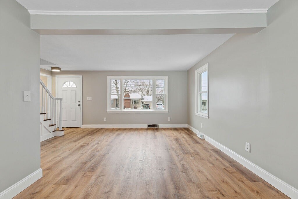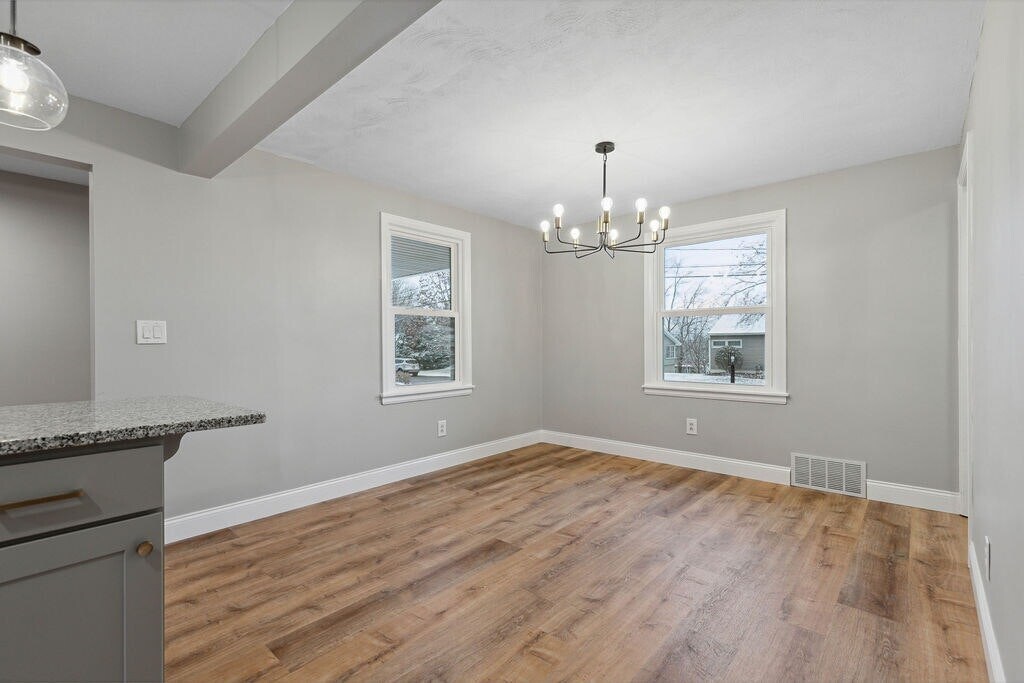 With stylish finishes, spacious living areas, and a private backyard, this move-in-ready rental is the perfect place to call home. This fully renovated 4-bedroom, 2.5-bath home offers 1,640 sq ft of thoughtfully designed living space in the charming village of Baldwinsville. The interior features fresh paint, luxury vinyl plank flooring throughout, beautiful lighting, and many tasteful details that bring a modern yet cozy feel to the home. The kitchen is both attractive and functional, showcasing shaker cabinets, granite countertops, a farmhouse sink, a large island, custom lighting, and stainless steel appliances. A spacious adjoining dining area makes it the perfect space for family meals or entertaining guests. The living room is generous in size and opens to a deck that overlooks your private backyard sanctuary. The first floor includes two large bedrooms, two full bathrooms, and a conveniently located laundry area. Upstairs, you’ll find two additional bedrooms and a half bath—ideal for extra living space, a home office, or guest rooms. Additional features include a brand-new shed for seasonal storage and a full basement with both interior and exterior access, providing plenty of space for belongings, hobbies, or a workshop. Located in the highly sought-after Baldwinsville School District, this home offers the perfect blend of comfort, convenience, and style.