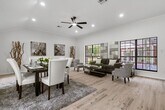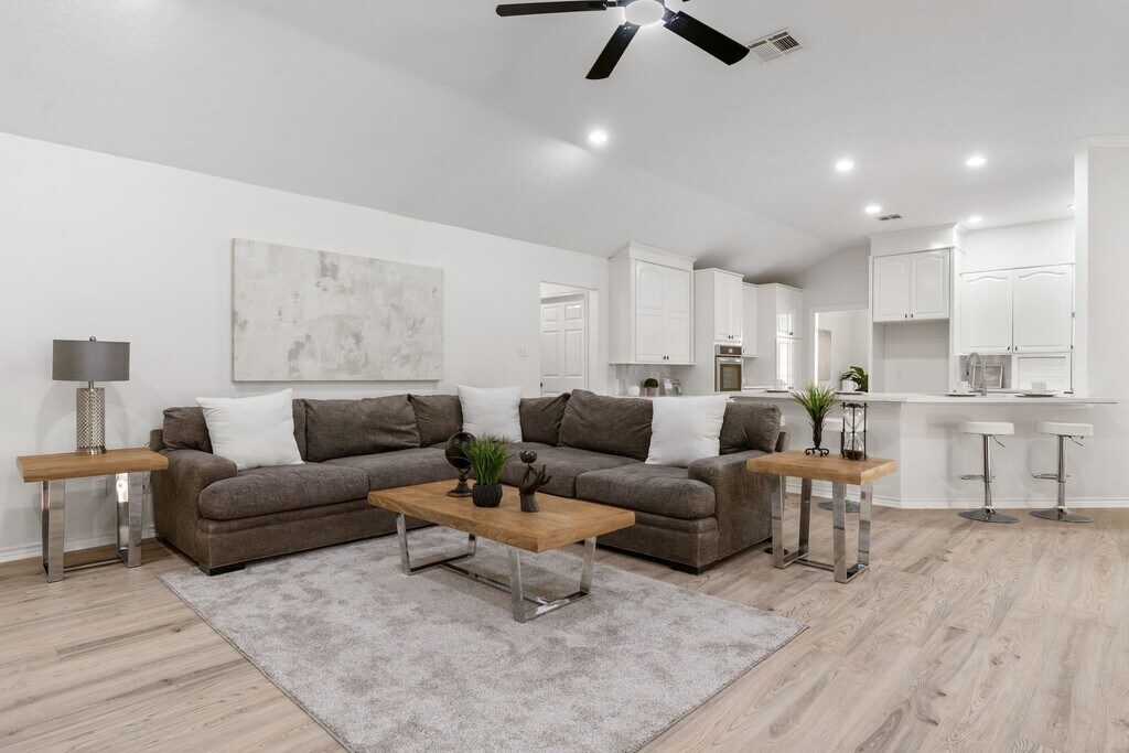 Step inside this beautifully refreshed home where comfort and style come together. Fresh paint,new flooring,and thoughtful updates create a space that feels both modern and welcoming. The living room invites you in with soaring ceilings,a cozy dark brick fireplace,and sliding patio doors that open to a sunlit backyard. The kitchen is designed for gathering,with white cabinetry,quartz counters,stainless steel appliances,and an open flow into the living area. Spacious bedrooms offer soft new carpet and ceiling fans,while the updated bathrooms feature sleek tile showers and modern vanities. For extra peace of mind,enjoy a Generac generator and the convenience of a private water system connected to public water. With plenty of backyard space for relaxing or entertaining and a location close to schools,shopping,and major highways,this home is the perfect place to settle in and make lasting memories. MLS# 76462419