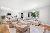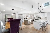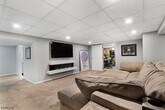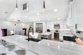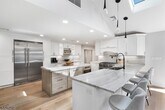 Tucked away at the end of a quiet, tree-lined cul-de-sac, this luxury sprawling ranch offers both privacy and an exceptional living space. The living room's warm hardwood floors, fireplace, custom shelves and oversized windows set a welcoming tone, flowing into a dramatic great room with a vaulted ceiling, stone fireplace, and sliding doors that open to an expansive deck. The kitchen impresses with stainless steel appliances, quartzite counters, pot filler, custom cabinetry, wine rack, 6 burner stove, an island with a microwave, and a breakfast bar with seating perfect for both weekday breakfasts and lively gatherings. The fully finished basement extends the living space with a full bathroom, laundry room, living room, storage room, and bonus family room. The large primary suite offers high ceilings, walk-in closet and an en-suite bathroom. Additional bedrooms are well-sized for guests or flexible use. A rare 4-car tandem garage ensures abundant parking and storage. Outside, the private backyard provides a serene backdrop for entertaining or relaxing. Located minutes from shopping, dining, and major highways make this home a standout. This rental comes fully furnished with high-end furniture.