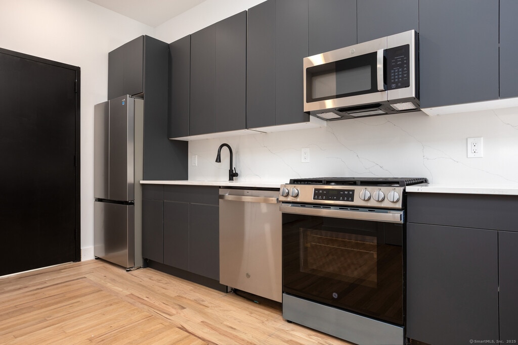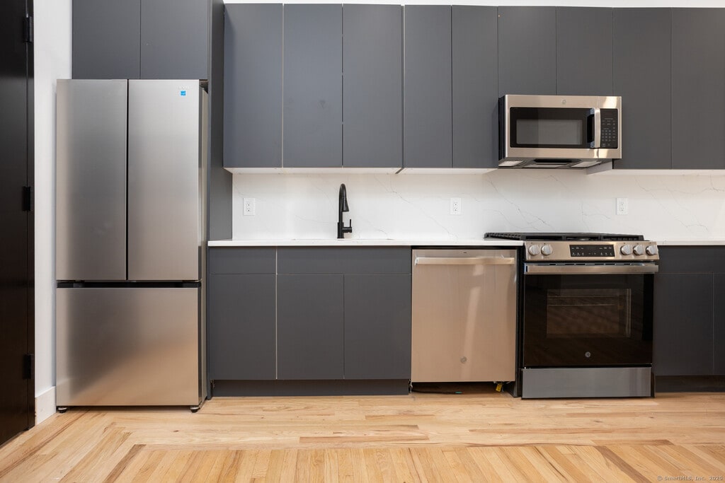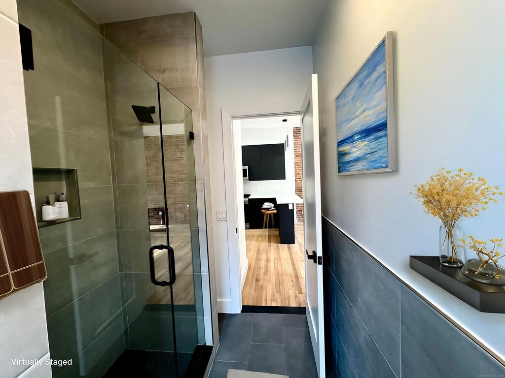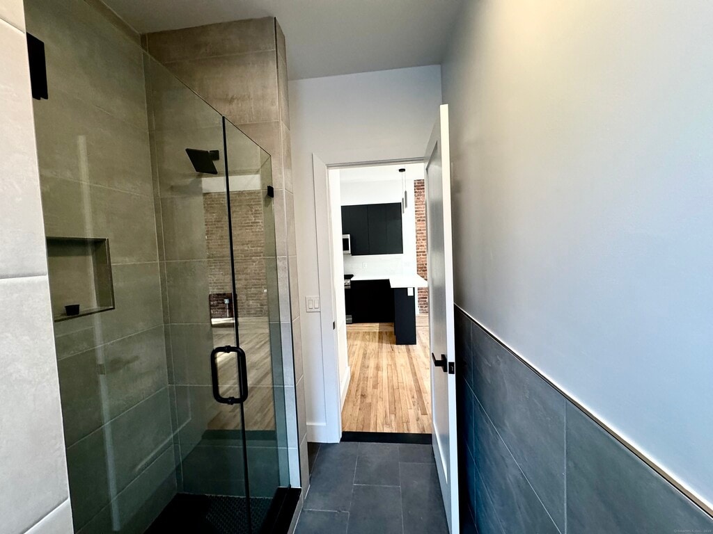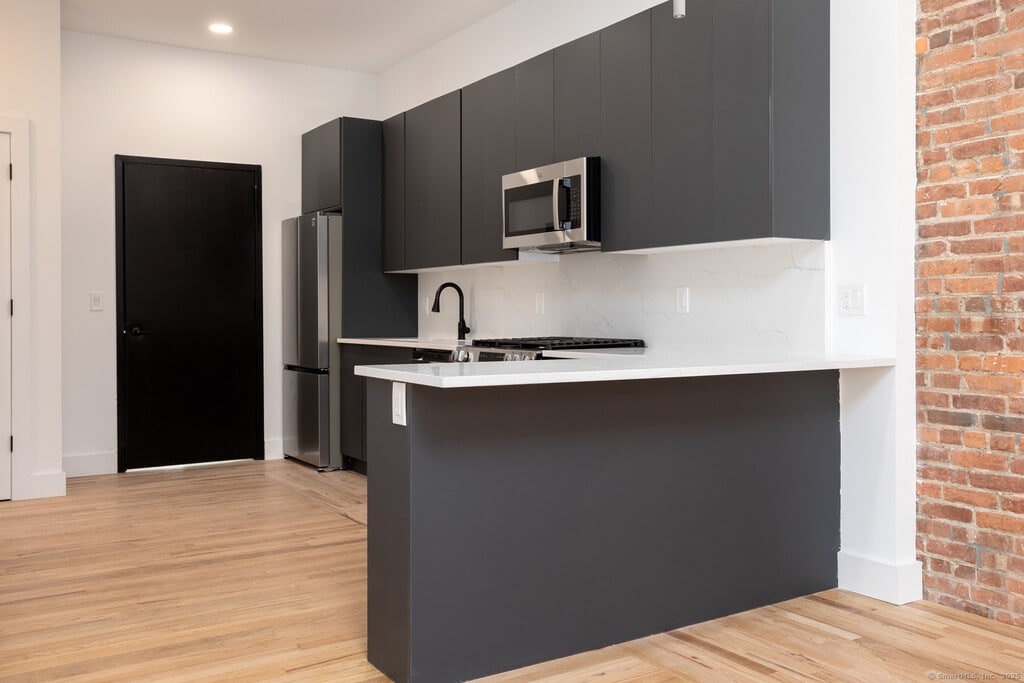 Call for Availability - Find your perfect city retreat in this stylish loft apartment, perfectly situated in the historic and lively Wall Street neighborhood. This beautifully updated space seamlessly blends modern design with historic charm. Imagine soaring 10+ foot ceilings, original exposed brick, and huge windows flooding the apartment with natural light, creating an open and airy feel. The gorgeous modern kitchen boasts stainless steel appliances - refrigerator, dishwasher, stove/oven, and microwave - paired with sleek cabinetry and elegant quartz countertops. A bright and open dining and living area with hardwood floors is next to the kitchen and has a private entrance to a large outdoor deck that offers ample privacy - perfect for entertaining or relaxing. You can also unwind in the modern, fully-tiled bathroom with a glass-enclosed luxury shower as well as enjoy the added convenience of an in-unit washer and dryer. The bedrooms offer abundant closet space and room for personalization and comfortable living. A high-efficiency HVAC system ensures year-round comfort. This home includes off-street parking for one car, with the option for additional vehicles. Located in a desirable central Norwalk location, you'll be steps away from parks, fantastic restaurants, and fashionable shopping, with easy access to highways and public transportation for a simplified commute. MLS# 24128091