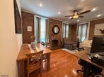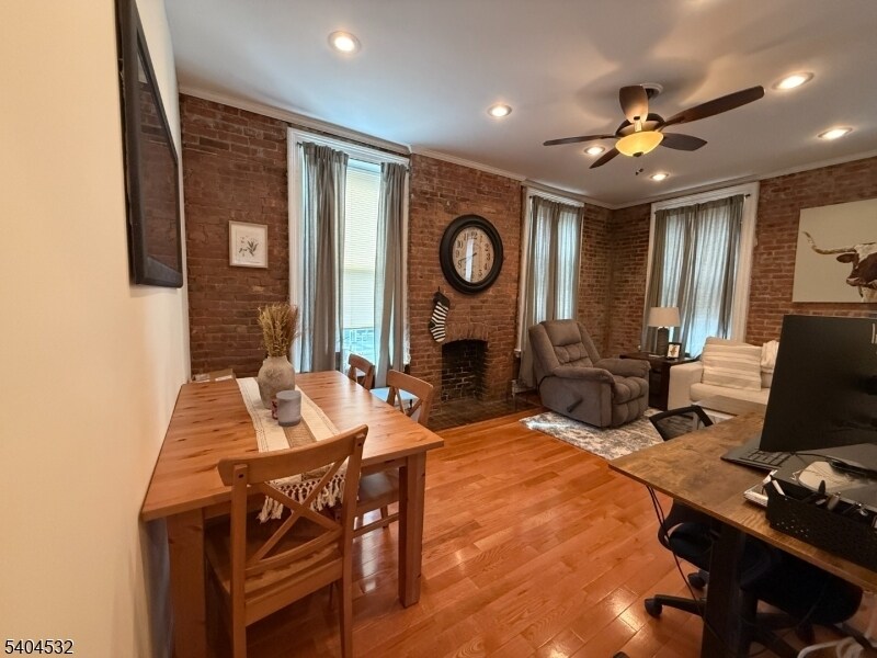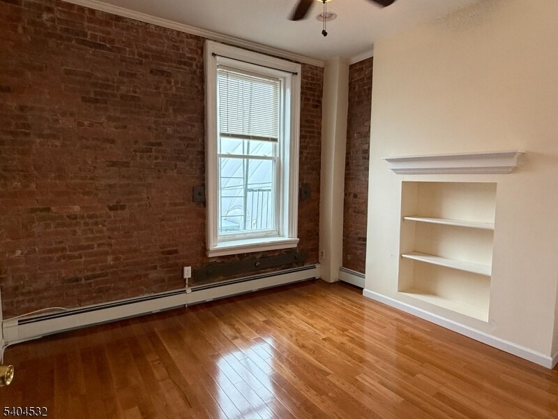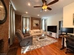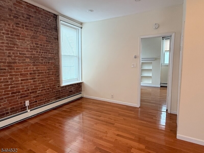 When modern meets classic, this one is for you! Large and charming 1 bed / 1 bath second-floor apartment in the heart of downtown Montclair- literally off of Walnut St. Features beatiful hardwood floors, exposed brick walls, cathedral ceilings recessed lighting, and ceiling fans throughout. Spacious living\dining area with room to work from home. Fully equipped kitchen and full bathroom with tub\shower. Expansive sun-filled bedroom with ample closet space and built-in shelves (accommodates a king size bed and more). One assigned off-street parking space included. Laundry available in building via basement (no in-unit laundry). Prime location with the Walnut Street train station to NYC directly across the street and easy access to shops, dining, and the incredible Wlanut Farmers Market on Saturdays. No pets, sorry.