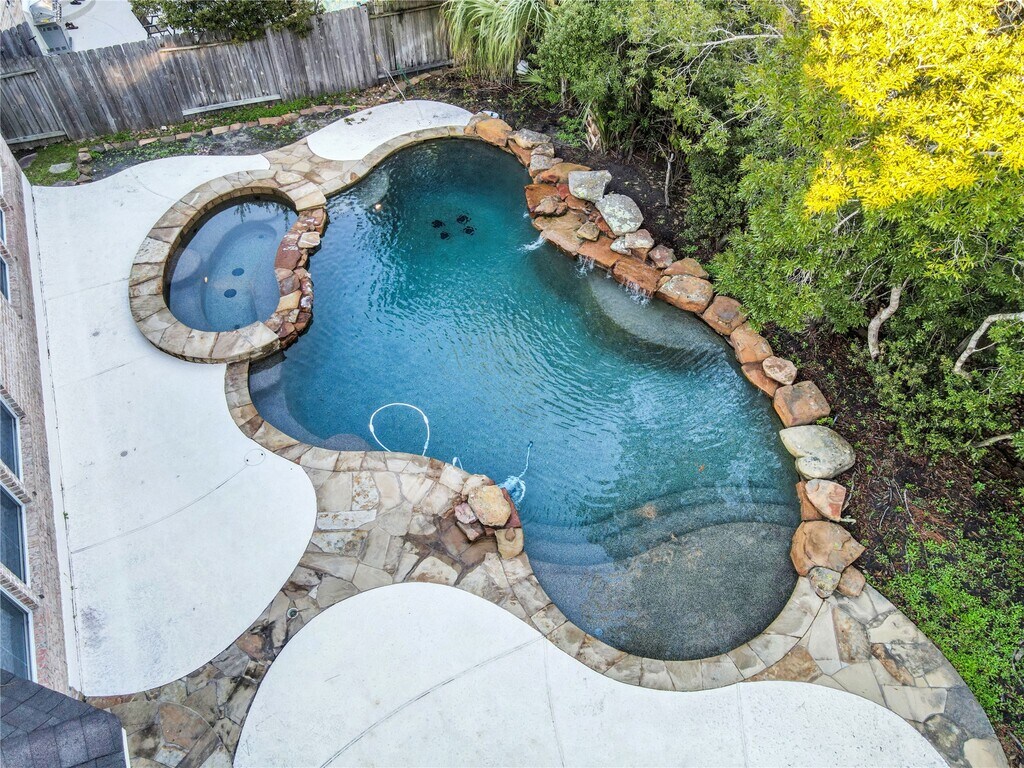 Located in the prestigious enclave of Artist Grove in The Woodlands,this stunning two-story David Weekley luxury residence in one of the area’s most desirable communities. The home features soaring ceilings and an elegant open-concept design highlighted by rich hardwood floors,designer brick interior accents,and a dramatic brick-arch butler’s pantry. The gourmet kitchen centers around a large granite island and includes a built-in EuroCave wine chiller,perfect for entertaining. Step outside to a breathtaking private backyard oasis where a slate waterfall cascades between a sparkling pool and spa,creating a resort-style retreat. Additional highlights include a formal dining room,freshly painted interiors,and an expansive 4-car tandem garage with workshop space. Situated near top-rated schools,the YMCA,parks,shopping,and library,this exceptional property combines luxury,comfort,and convenience in one of The Woodlands’ most sought-after neighborhoods MLS# 91322902