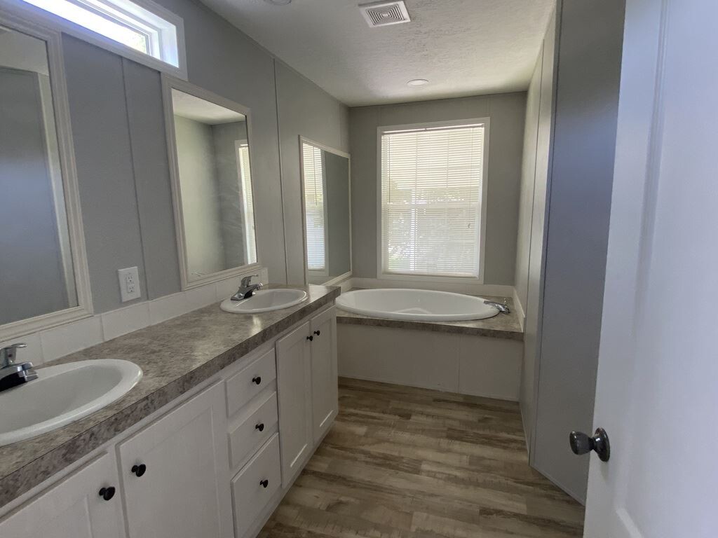 Tentatively available 3/1/2026. This home is currently occupied and cannot be shown. This gorgeous 2020, 1161.60 sq. ft., 3 bed/2 bath home is ready for you! Featuring a large covered carport with large shed that has a pad behind the shed to store your motorcycle or golf cart. The living room is bright with lots of windows that opens to the dine in kitchen with lots of cabinet space separated by a pony wall with pillar. Split floor boasts has a Master bedroom . Featuring lots of light and windows, and a french door closet. The Master ensuite features dual sink vanity, recessed lighting, tiled backsplash, soaker tub and walk in shower with ADA accessible benches. . You owe it to yourself to call our representatives and schedule a viewing of this home before someone else snaps it up!