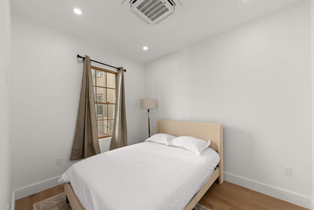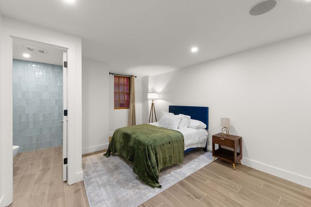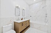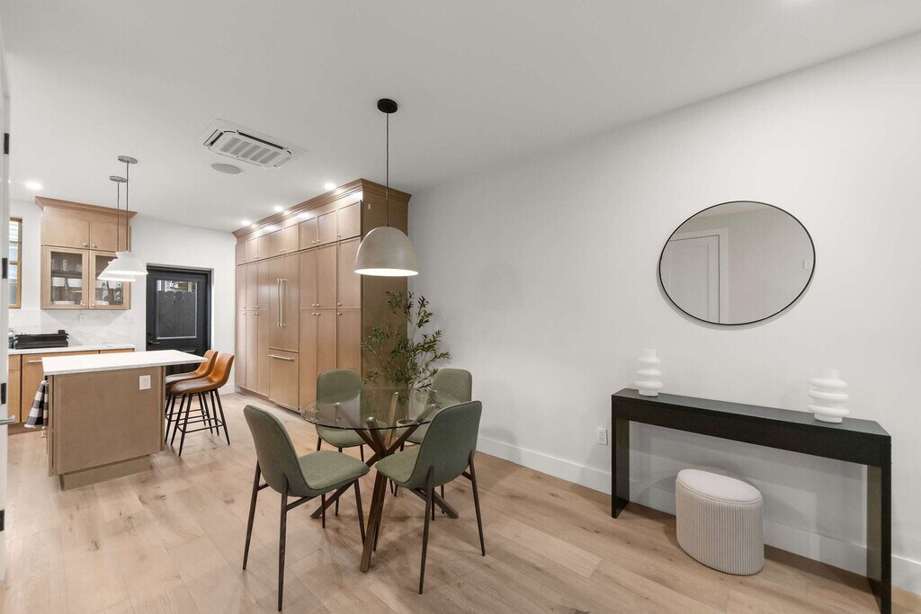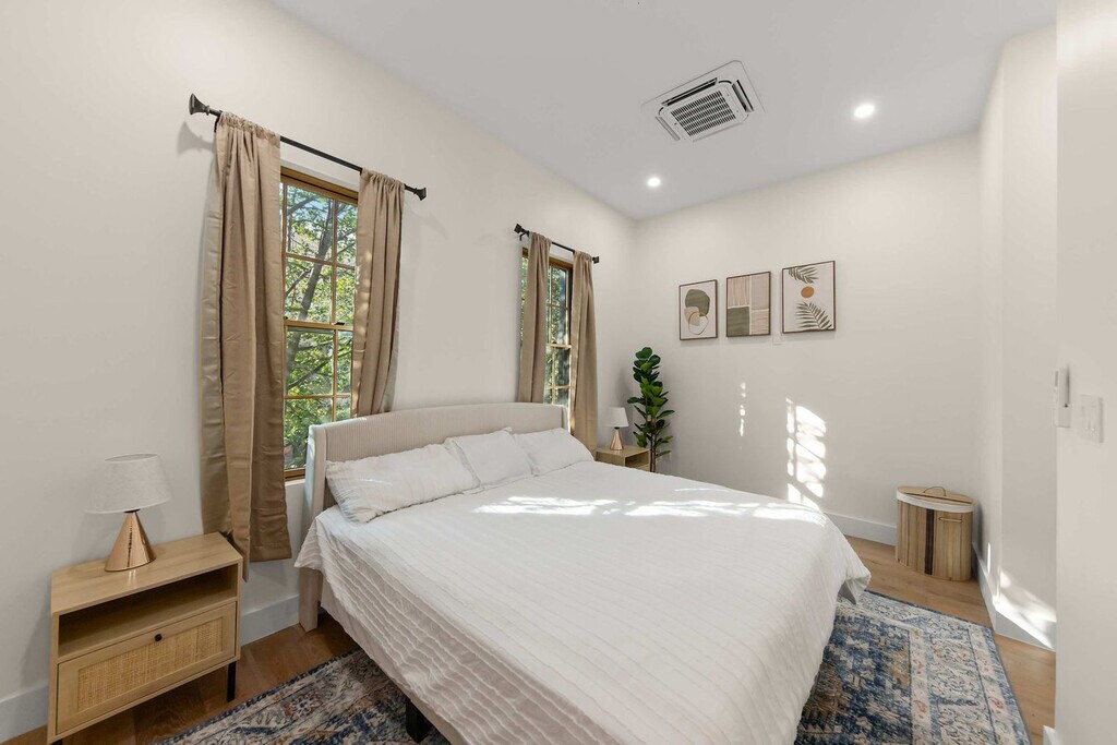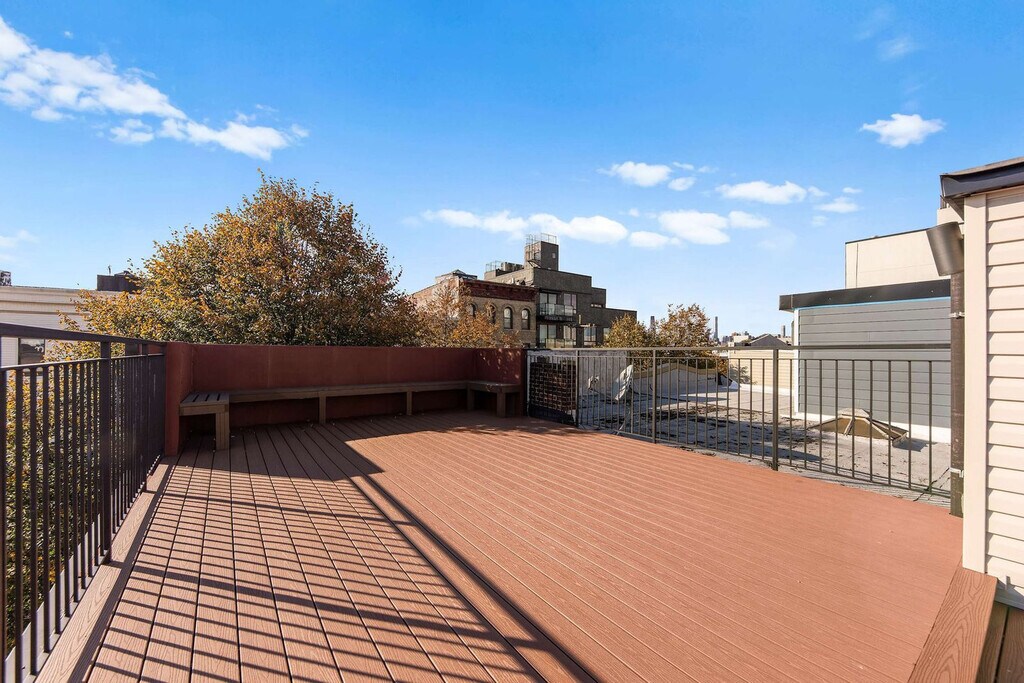 Step into your Brooklyn retreat and feel at home in this stylish 3-bedroom townhouse oasis in Greenpoint. This thoughtfully redesigned townhouse blends historic charm with fresh, modern style, creating a light-filled sanctuary. The parlor level welcomes you with wide-plank white oak floors and oversized bay windows that bathe the space in natural light. The open kitchen is a chef’s dream, featuring premium Bertazzoni appliances, honey-toned cabinetry, Calacatta Nuevo countertops, and a sleek wall of floor-to-ceiling cabinets. The primary suite features three closets and a spa-style en-suite with a deep soaking tub, double vanity, and mosaic-tiled floors. The finished lower level includes a half bath, washer/dryer, and a flexible den space. Take in sweeping Manhattan skyline views from the full-length rooftop terrace. Step right out to your private deck for morning coffee or evening cocktails, perfect for seamless indoor-outdoor living. You’ll be just a short walk from McGolrick Park, local favorites like Amber Steak House, Pierozek, and Frankel’s, and the G & L trains for quick access to Manhattan and Williamsburg. [SI]