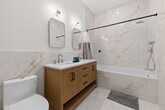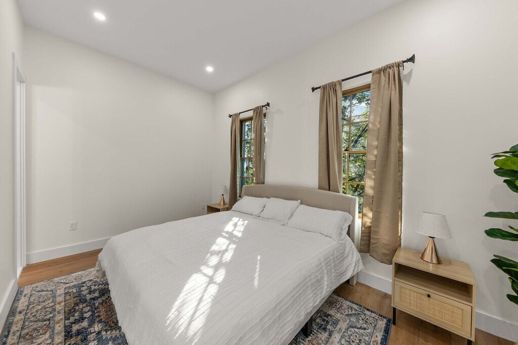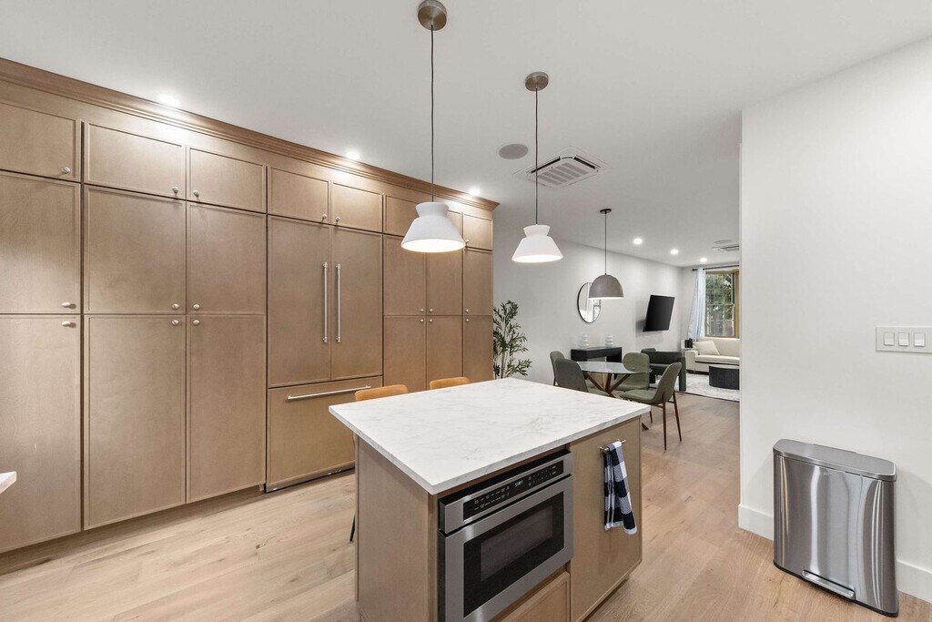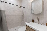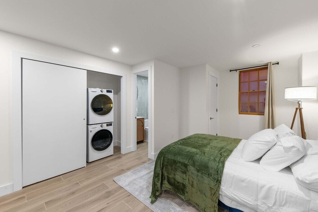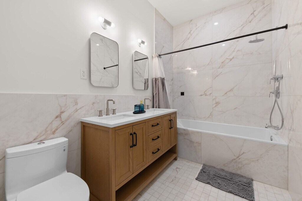Step into your Brooklyn retreat and feel at home in this stylish 3-bedroom townhouse oasis in Greenpoint. This thoughtfully redesigned townhouse blends historic charm with fresh, modern style, creating a light-filled sanctuary. The parlor level welcomes you with wide-plank white oak floors and oversized bay windows that bathe the space in natural light. The open kitchen is a chef’s dream, featuring premium Bertazzoni appliances, honey-toned cabinetry, Calacatta Nuevo countertops, and a sleek wall of floor-to-ceiling cabinets. The primary suite features three closets and a spa-style en-suite with a deep soaking tub, double vanity, and mosaic-tiled floors. The finished lower level includes a half bath, washer/dryer, and a flexible den space. Take in sweeping Manhattan skyline views from the full-length rooftop terrace. Step right out to your private deck for morning coffee or evening cocktails, perfect for seamless indoor-outdoor living. You’ll be just a short walk from McGolrick Park, local favorites like Amber Steak House, Pierozek, and Frankel’s, and the G & L trains for quick access to Manhattan and Williamsburg. [SI]