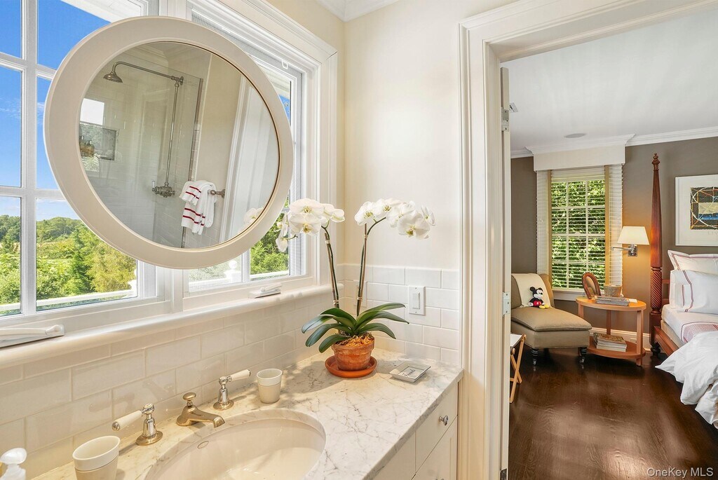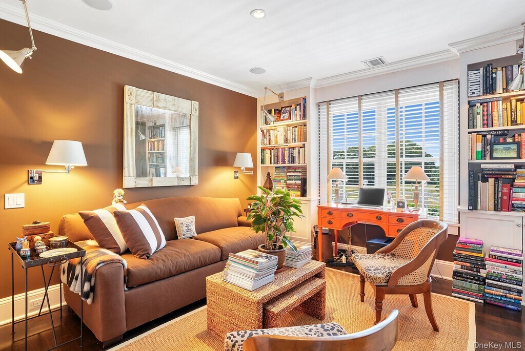 This elegant 3,000 sq. ft. traditional,designed by acclaimed interior designer Larry Laslo,combines contemporary comfort with refined architectural detail. The home's clean lines,sophisticated palette,and Hollywood Regency accents create a residence that is both stylish and welcoming. The main level features a formal entry with a striking black-and-white checkerboard floor,leading into a spacious living room,dining area,and kitchen. Eleven-foot ceilings,substantial crown moldings,and a double-height foyer with a grand staircase contribute to the home's impressive scale. The upper level is thoughtfully laid out,featuring a private primary suite on one wing and a guest suite,along with a study/library,on the other. The study is designed for versatility,offering a convertible option for additional overnight accommodations. A marble laundry room completes the interiors. South-facing principal rooms provide abundant natural light and open views across a wide field. Outdoor amenities include a heated gunite pool,bluestone patio,and covered porch,offering multiple areas for entertaining and summer living. Conveniently located just minutes from East Hampton Village,the property is close to shopping,galleries,dining,theaters,and beaches. Home includes complimentary access to community tennis courts. Based on information submitted to the MLS GRID as of [see last changed date above]. All data is obtained from various sources and may not have been verified by broker or MLS GRID. Supplied Open House Information is subject to change without notice. All information should be independently reviewed and verified for accuracy. Properties may or may not be listed by the office/agent presenting the information. Some IDX listings have been excluded from this website. Prices displayed on all Sold listings are the Last Known Listing Price and may not be the actual selling price.