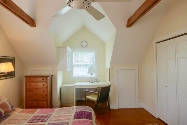 THIS IS A WEEKLY SUMMER RENTAL ONLY.THE WEEKLY PRICE IN AUGUST IS $2,000. PER WEEK.SEE WEB SITE FOR ADDITIONAL WEEKLY PRICING. This spacious and well appointed one bedroom guest house has a cozy living area and kitchen which opens up to a large second story deck with outdoor furniture,table and chairs where you can enjoy dining amidst the trees. One A/C unit is in the bedroom along with a ceiling fan. The living area has a ceiling fan and stays cool with the help of some nearby trees providing shade. Inside,enjoy all the comforts of home. Outside,explore Seth's Pond on a paddle board or kayak. Lambert's Cove,the expansive white-sand beach is only .3 of a mile away and offers swimming,sunbathing and picnicking. Perfect place for a family to enjoy the entire summer. MLS# 72844885