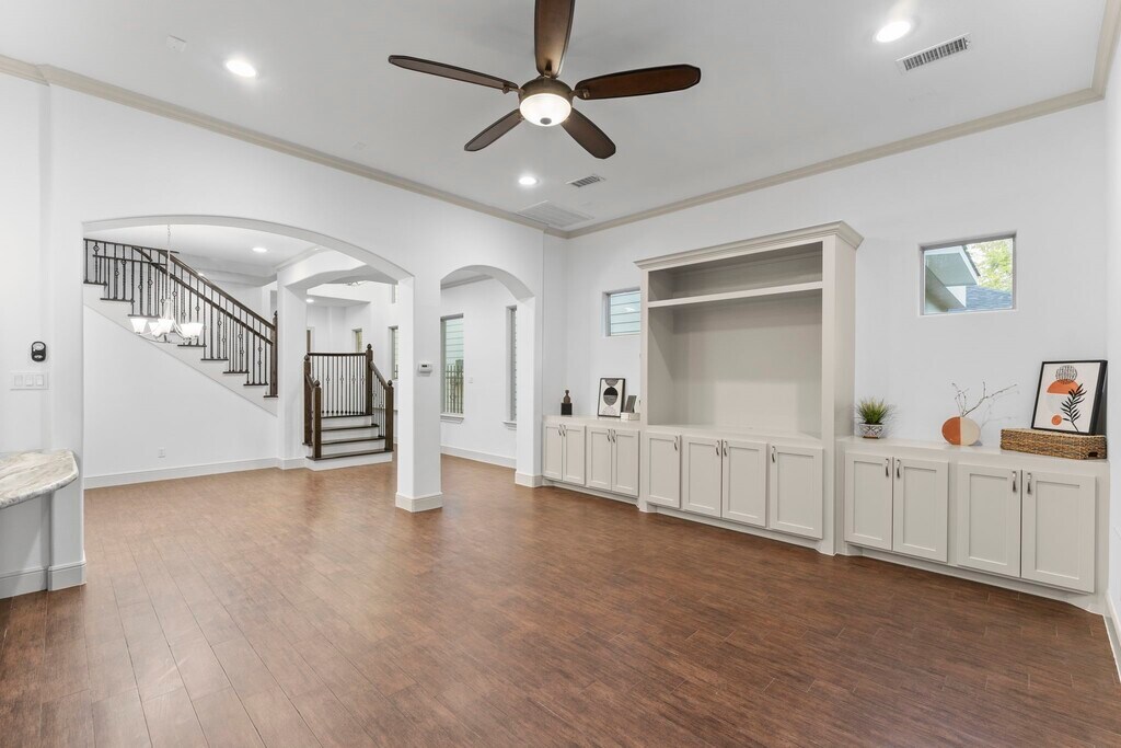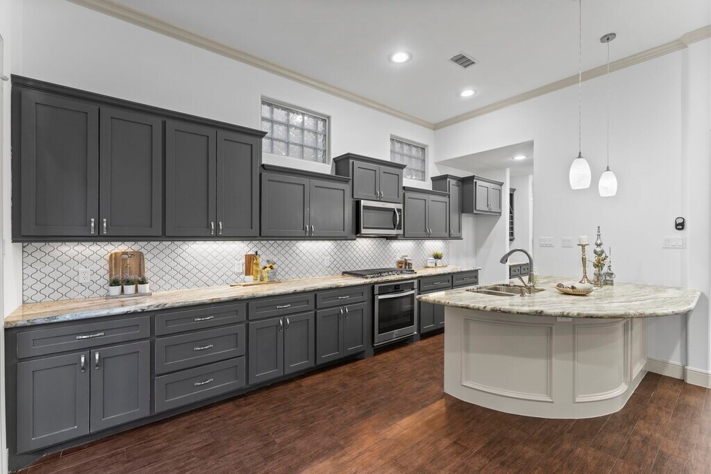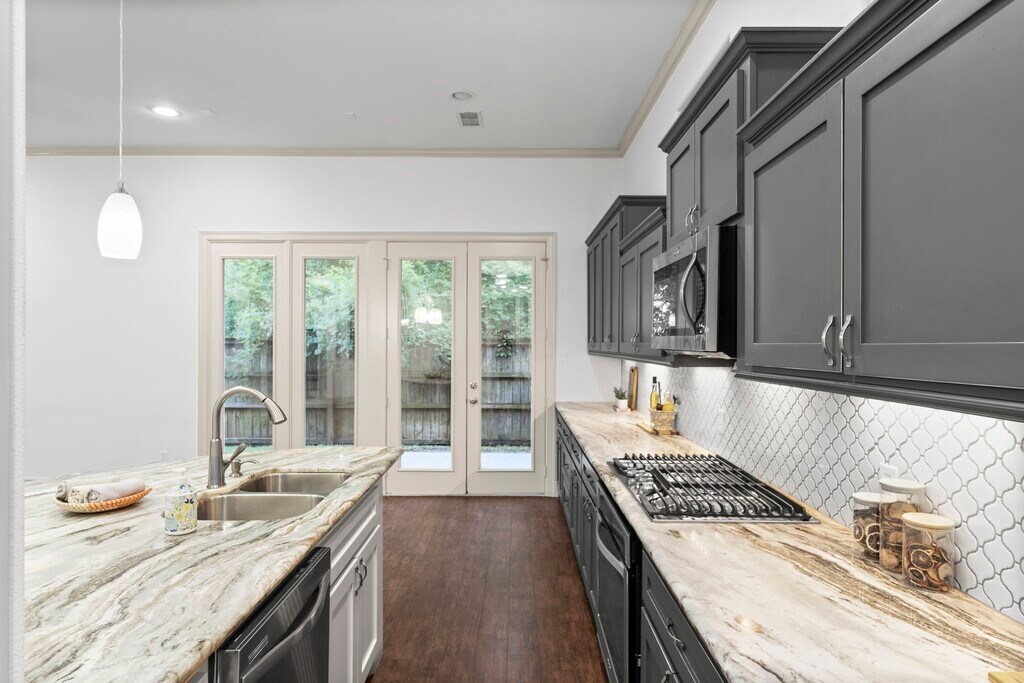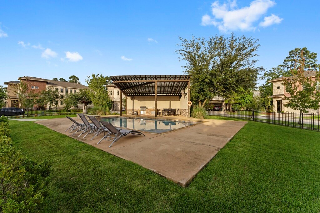 Elegant upscale home for lease in private gated community has all the rooms,bells & whistles anyone could want,but designed for a low maintenance lifestyle with lawn maintenance included. Across the cul-de-sac street is an inviting pool,lawn,pavilion w/built-in grill,chaise loungers - waiting for you to enjoy. Grogan's Crest is located in an EXCELLENT LOCATION- easy access to I-45,restaurants,shops,mall,other Woodlands amenities. Gorgeous 3 bedroom (ensuite baths) home with 4.5 baths has updated upscale finishes and pleasing neutral colors. 1st floor has wood floors,preferred open concept living,dining,kitchen. Custom cabinets/built-ins including wine bar & built-in desk. Custom cabinets for storage/media in living. Kitchen has large peninsula island with room for seating and stunning quartz countertops. Second floor features 3 bedrooms,3 baths,convenient laundry room all accessed from a generously sized loft area. The third floor has huge game room and bath 4. MLS# 98173660